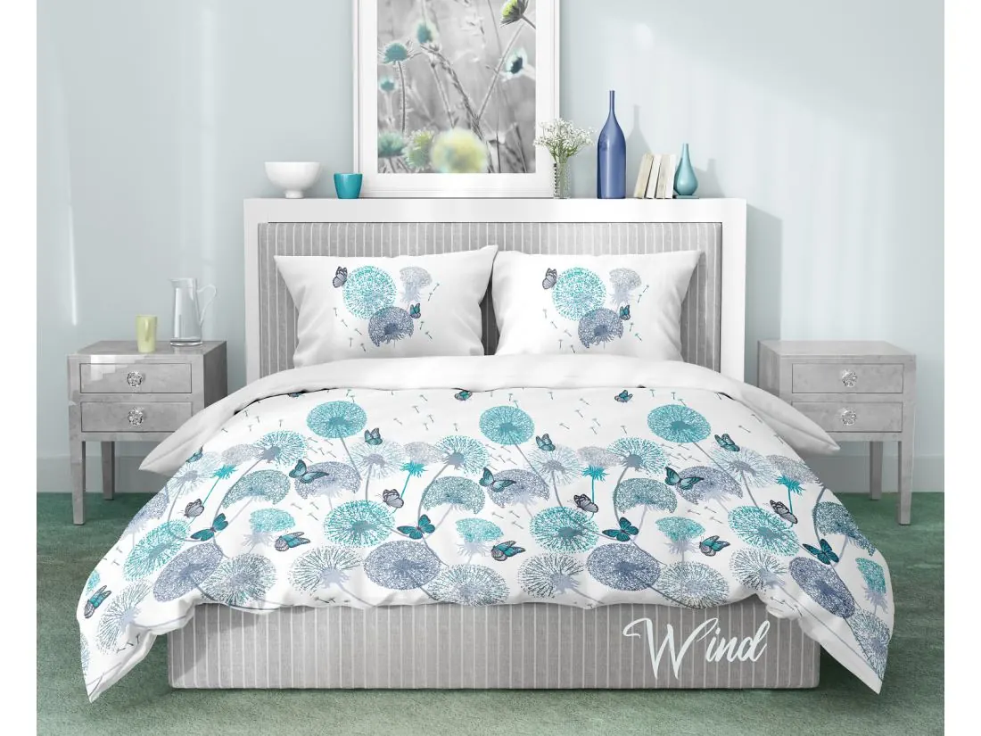 Pościel z bawełny 220x200 +2/70x80 Wind turkusowe motylki, dmuchawce Gold Collection