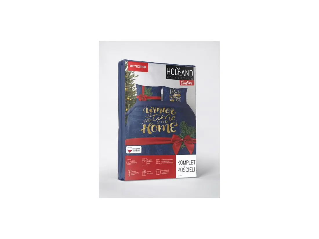 Komplet pościel z bawełny w rozmiarze 220x200 cm z kolekcji Holland Christmas firmy Detexpol to świąteczny wzór w modnej kolorystyce który sprawi, że każda noc będzie wyjątkowa tylko z radosnymi kolorowymi snami. To propozycja dla każdego miłośnika stylu minimalistycznego, idealna dla każdego kto lubi romantyczne wzory na pościeli.