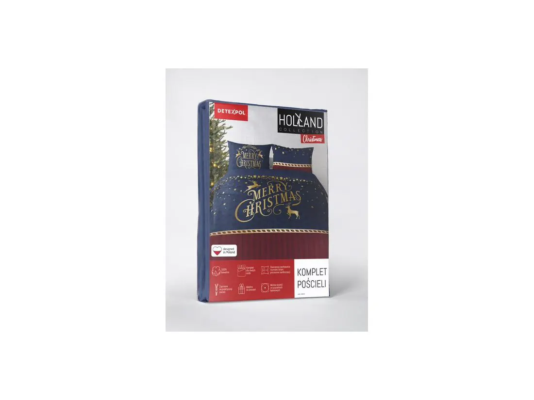 Komplet pościel z bawełny w rozmiarze 220x200 cm z kolekcji Holland Christmas firmy Detexpol to świąteczny wzór w modnej kolorystyce który sprawi, że każda noc będzie wyjątkowa tylko z radosnymi kolorowymi snami. To propozycja dla każdego miłośnika stylu minimalistycznego, idealna dla każdego kto lubi romantyczne wzory na pościeli.