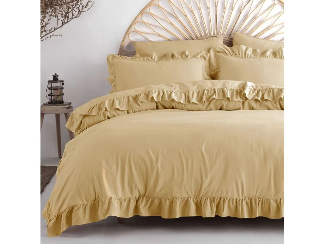 Pościel z bawełny 220x200+2/70x80 z falbanką Soybean Limasso w pudełku bez prasowania Exclusive kremowa