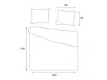 Wymiary: | poszwa - 220×200 cm z falbanką na guziki 2 poszewki na poduszki - 70x80 cm z falbanka na zakładkę |