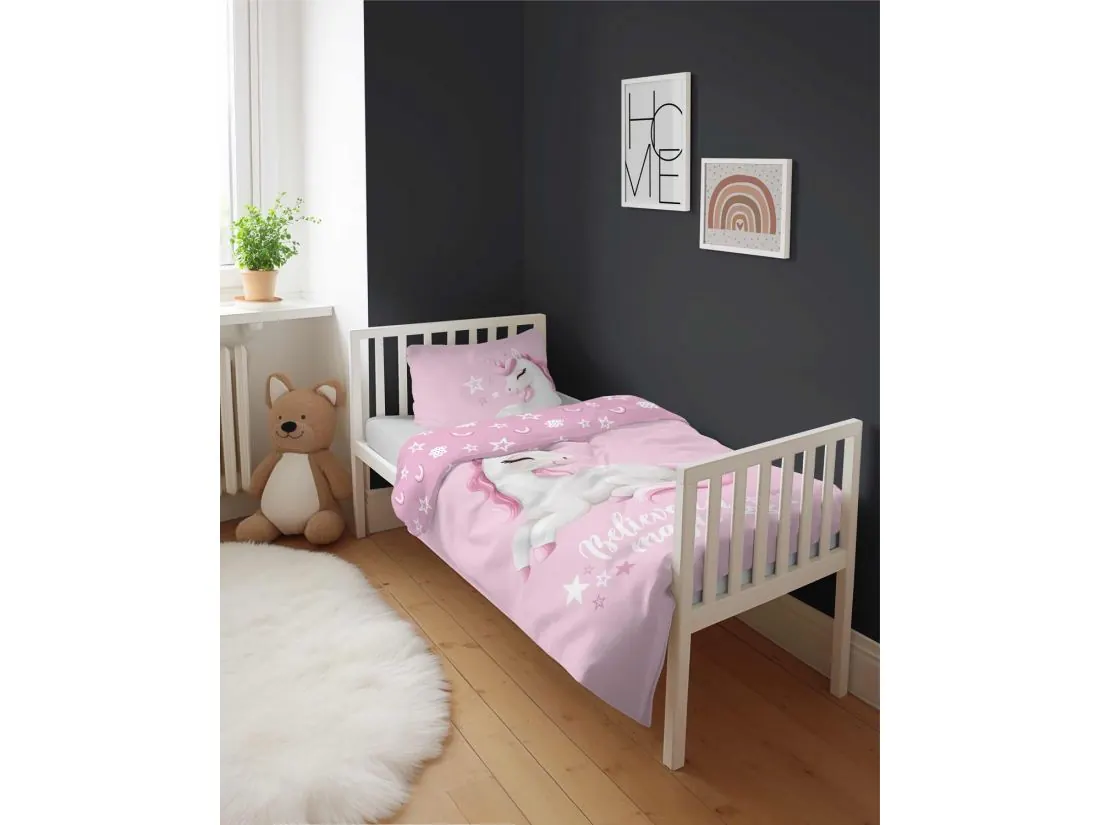 Pościel z bawełny 90x120 + 40x60 jednorożec na różowym tle dla dzieci do łóżeczka 5517 a