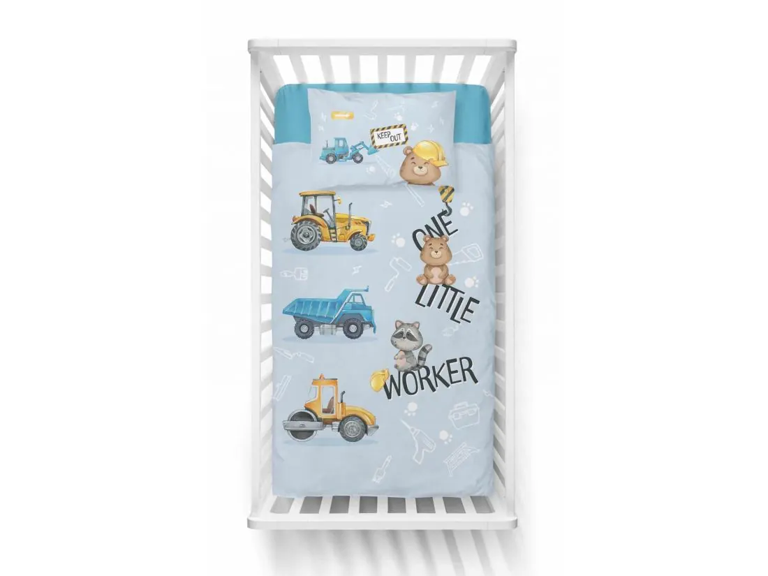 Pościel z bawełny 90x120 + 40x60 pracowite zwierzątka dla dzieci do łóżeczka 4993 b niebieska