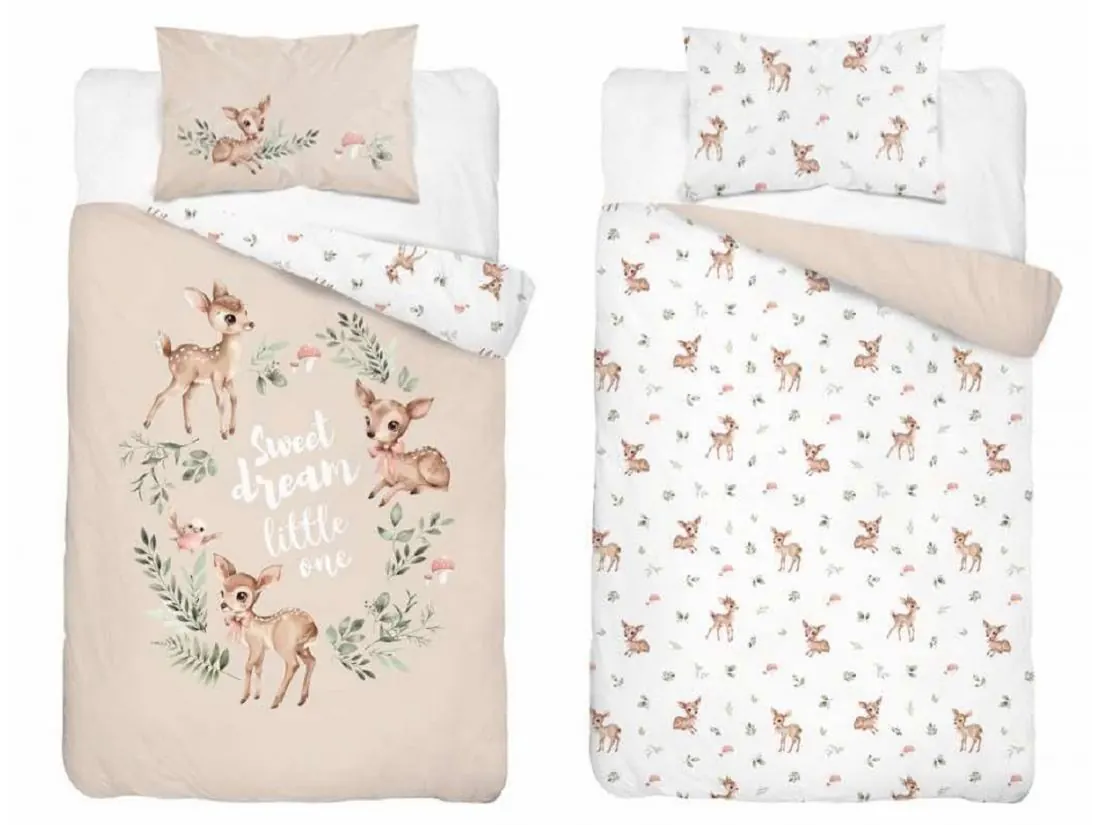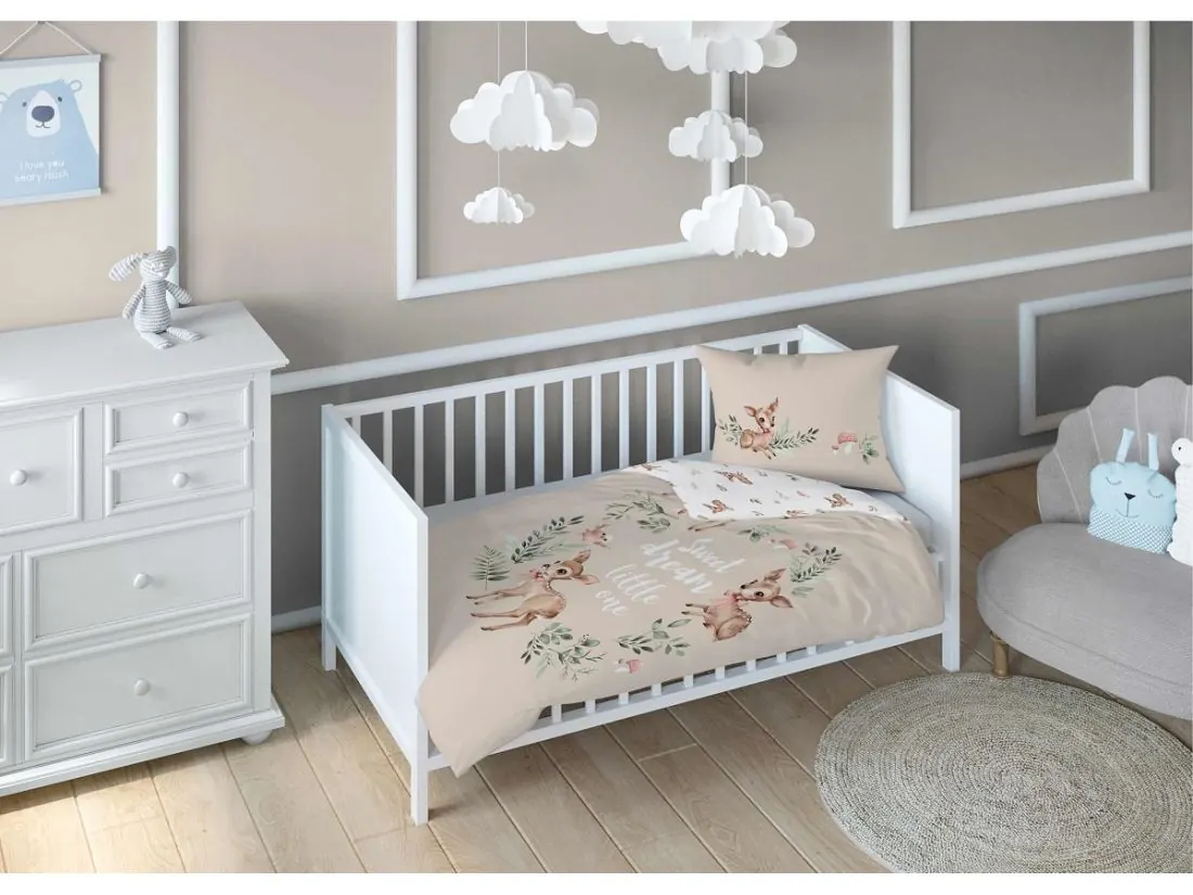 Pościel z bawełny 90x120 + 40x60 sarenka na beżowym tle dla dzieci do łóżeczka 5511 a