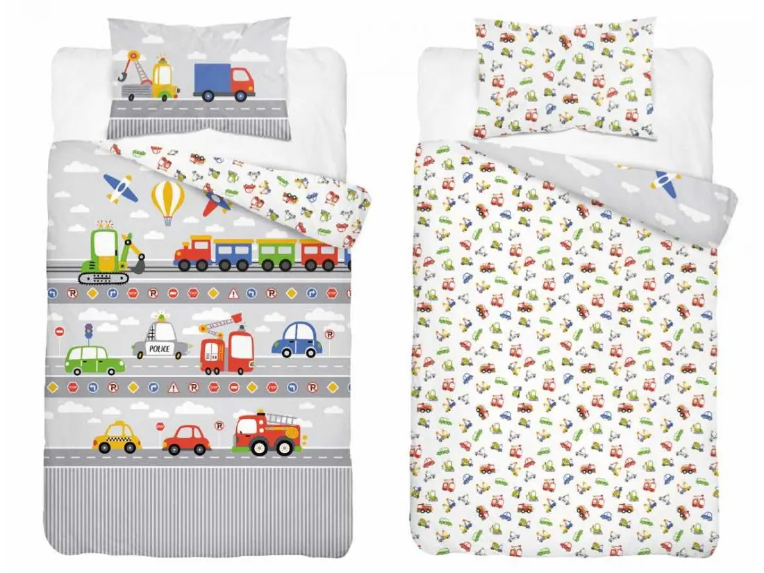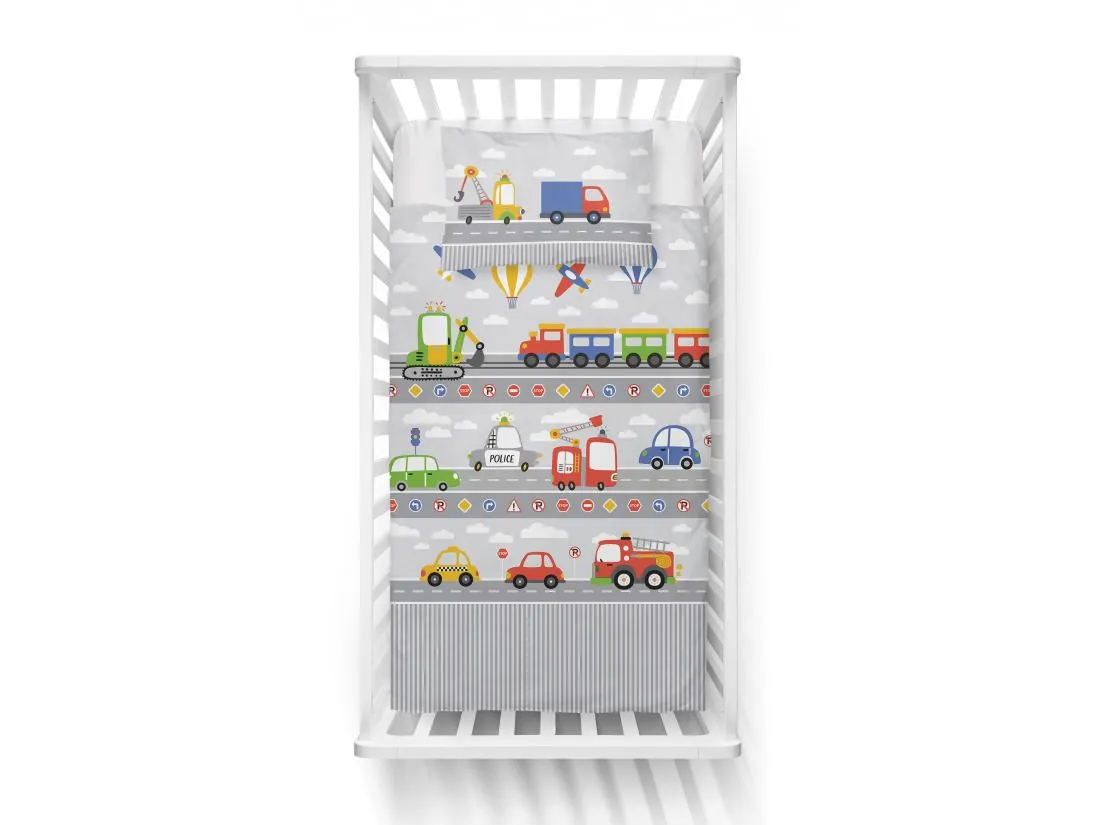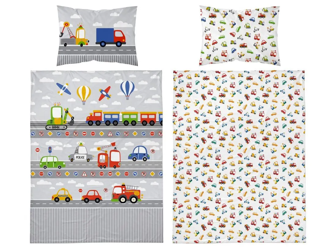 Pościel z bawełny 90x120 + 40x60 szara autostrada dla dzieci do łóżeczka 5139 b biało szara