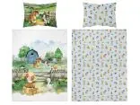 Pościel z bawełny 90x120 + 40x60 zwierzątka na farmie dla dzieci do łóżeczka 5140 b biało niebieska
