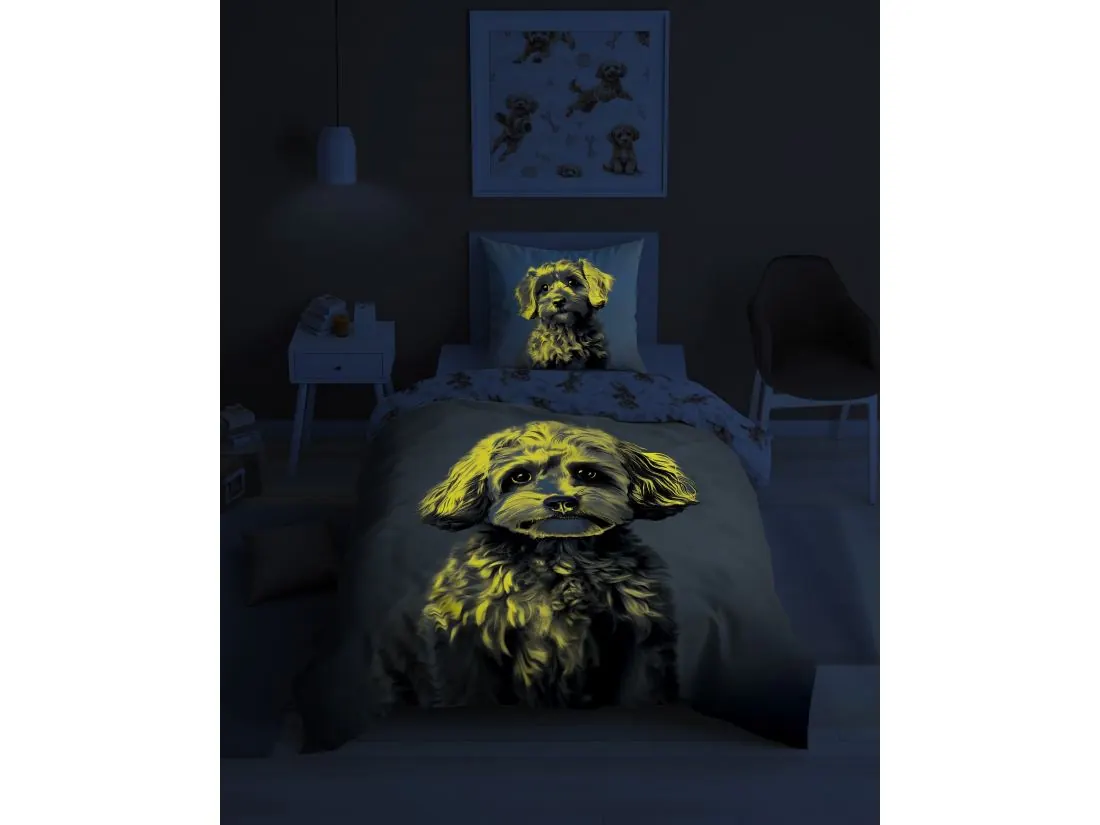 Pościel wyróżnia się unikalnym, dwustronnym wzorem, który można łatwo dopasować do nastroju lub wystroju pokoju. Dzięki fluorescencyjnym elementom, pościel ożywa w ciemności, tworząc magiczny efekt, który z pewnością zachwyci każde dziecko. Fluorescencyjne elementy są trwałe i bezpieczne – wystarczy je odpowiednio naświetlić, aby przez całą noc rozświetlały pokój subtelnym blaskiem. Ten magiczny efekt sprawia, że pościel staje się fascynującą dekoracją nocną, delikatnie rozświetlając pokój subtelnym, bezpiecznym blaskiem. Fluorescencyjne elementy są trwałe i zachowują swoje właściwości przez całą noc po odpowiednim naświetleniu.