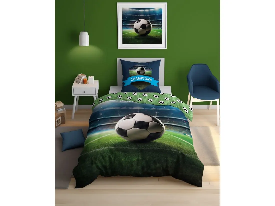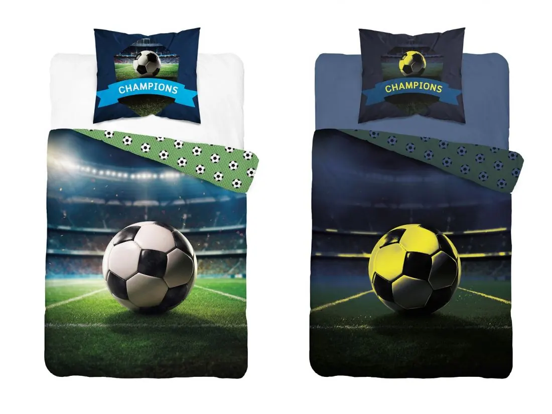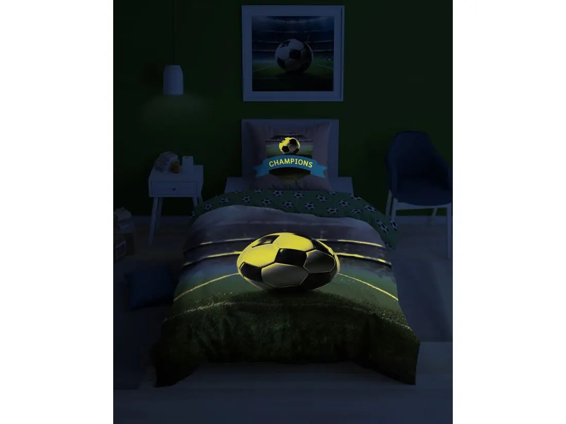 Pościel z bawełny dla dzieci 140x200+70x80 champions fluo 5422 a świeci w ciemności piłka