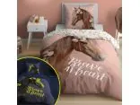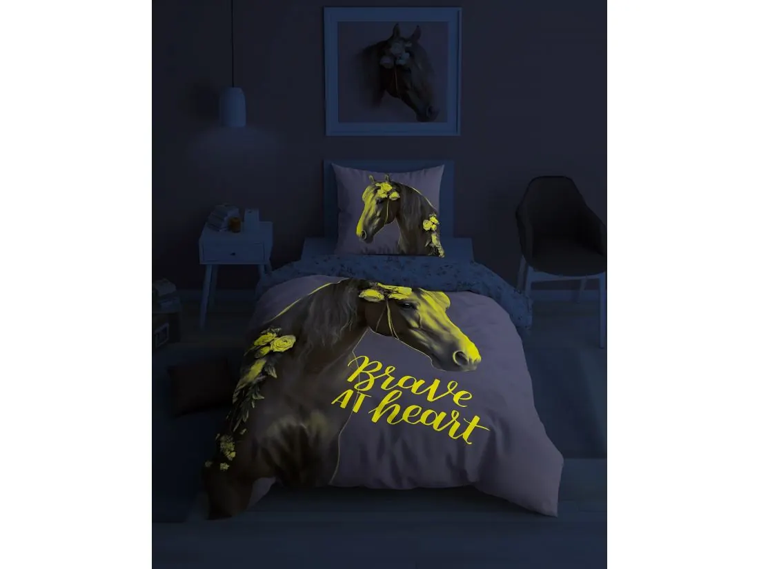 Pościel z bawełny dla dzieci 140x200+70x80 koń z kwiatami fluo 5412 a świeci w ciemności