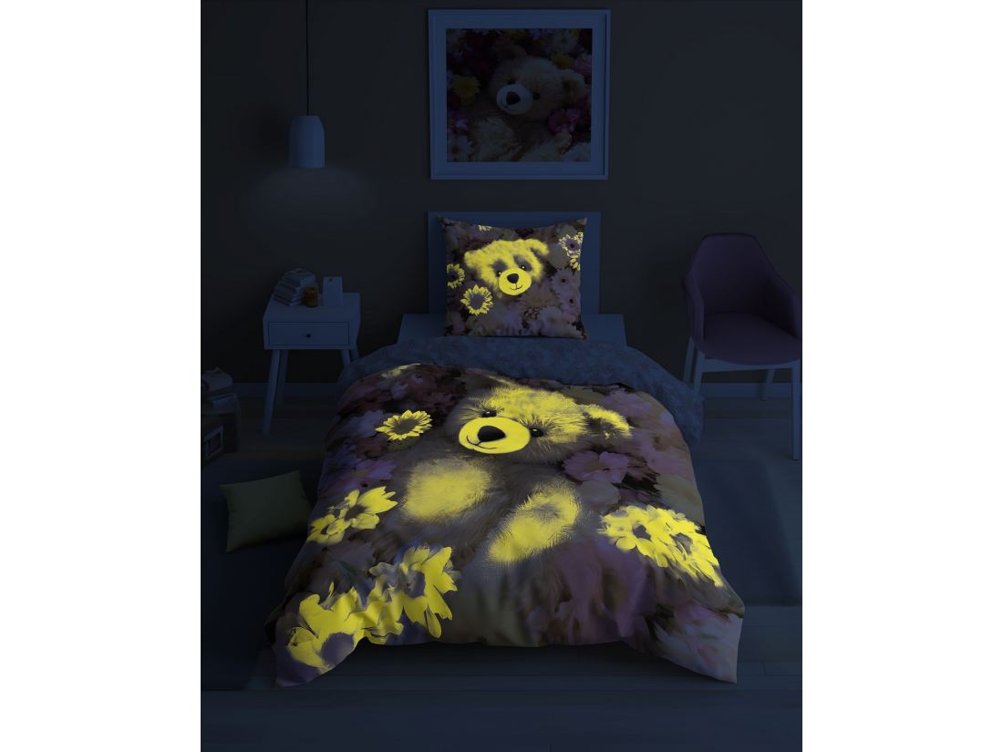 Pościel z bawełny dla dzieci 140x200+70x80 miś fluo 5415 a świeci w ciemności