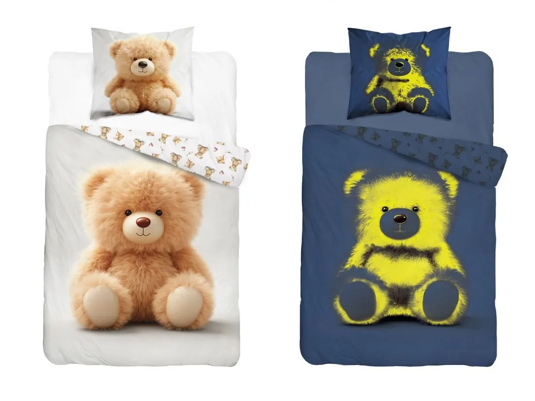 Pościel z bawełny dla dzieci 160x200+70x80 beżowy miś fluo 5416 a świeci w ciemności