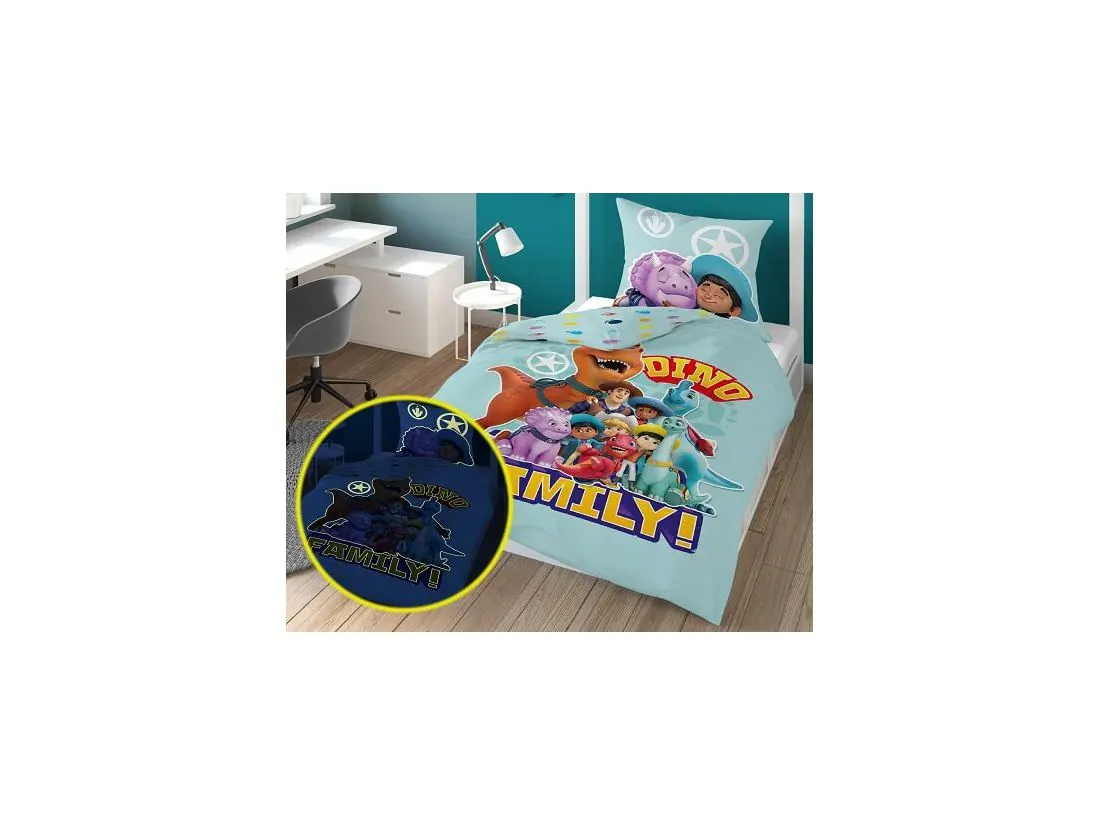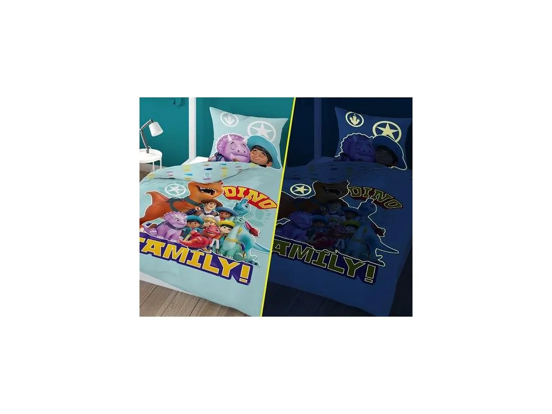 Pościel z bawełny dla dzieci 160x200+70x80 dino family fluo 01