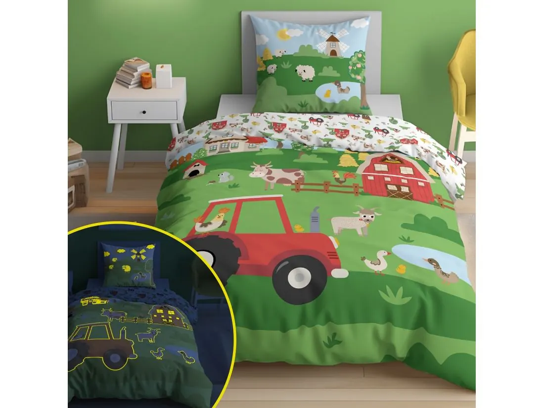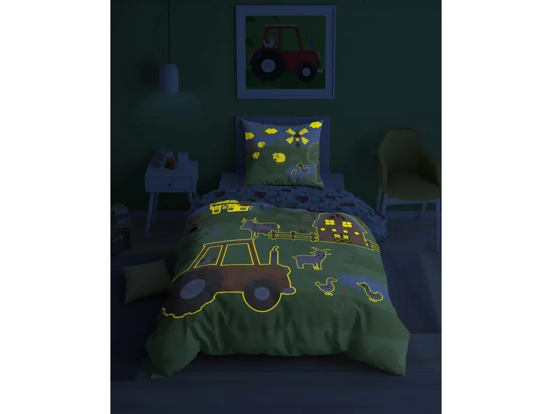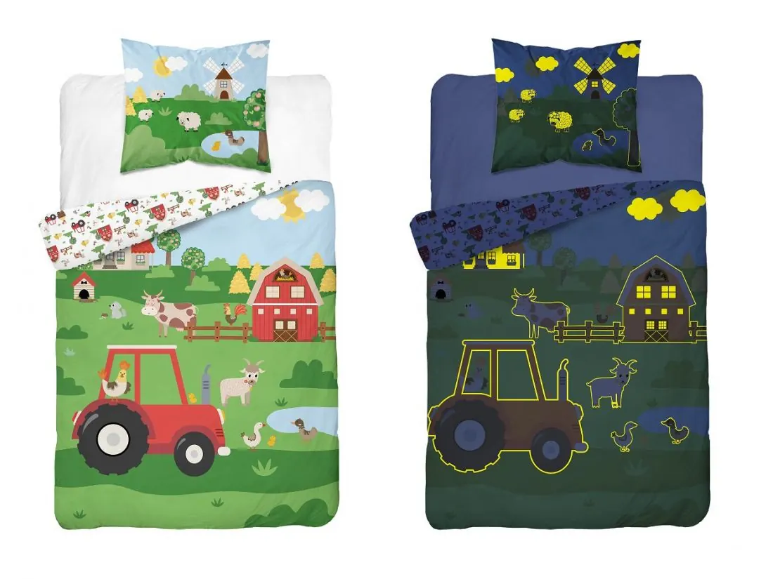 Pościel z bawełny dla dzieci 160x200+70x80 farma fluo 5417 a świeci w ciemności