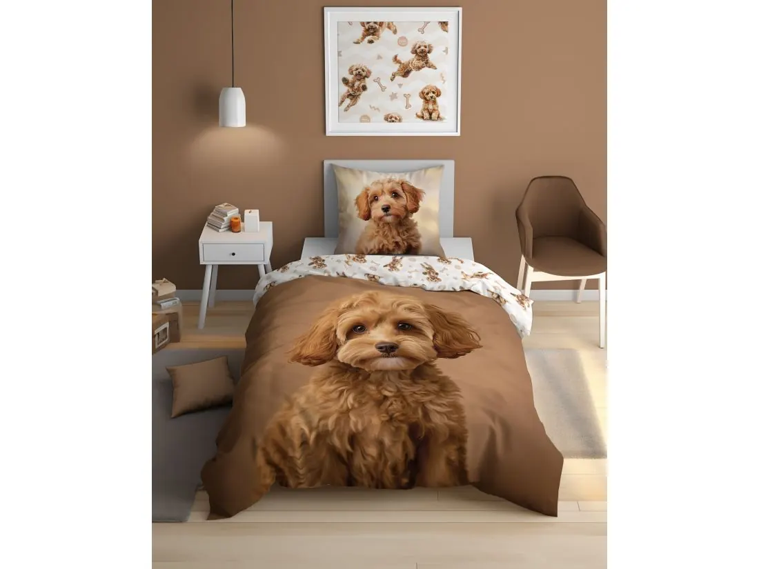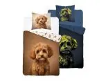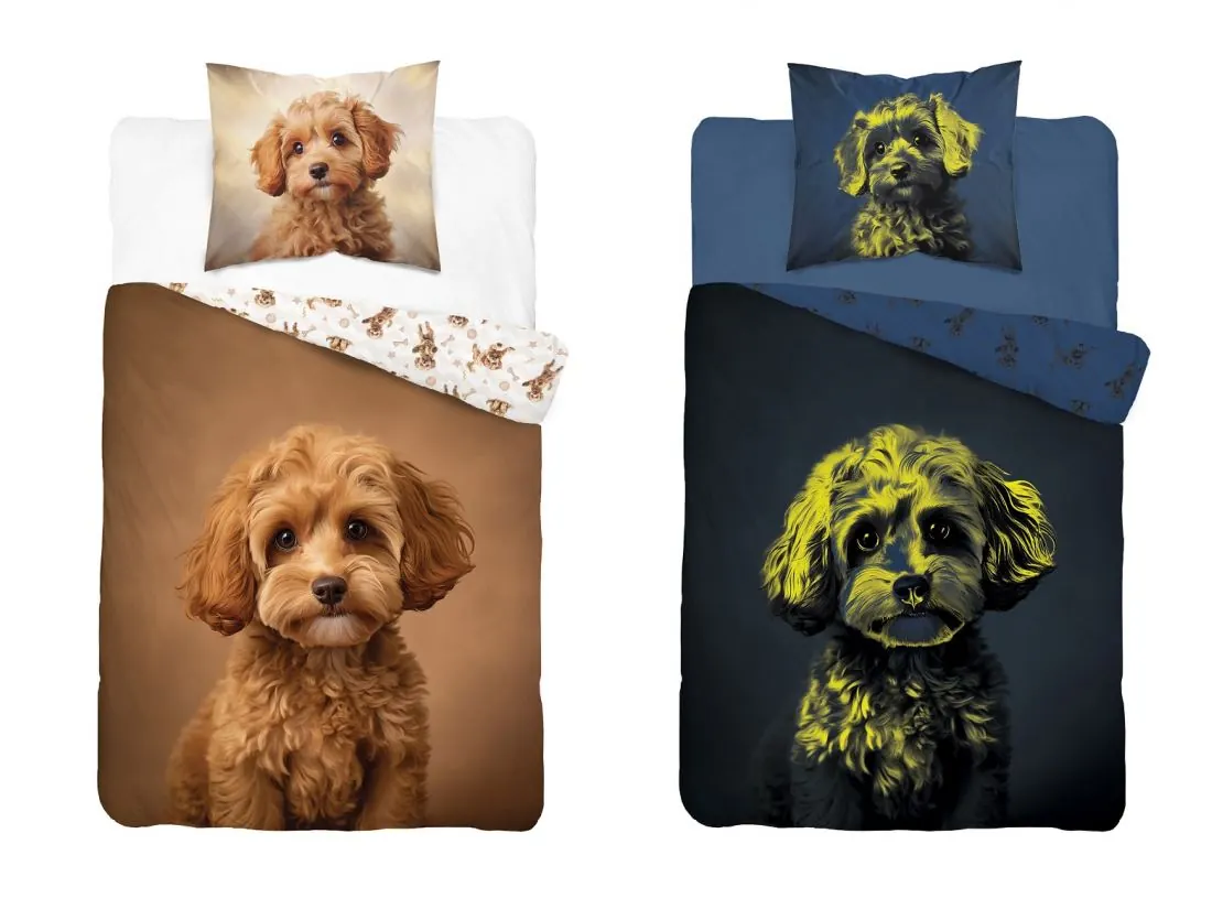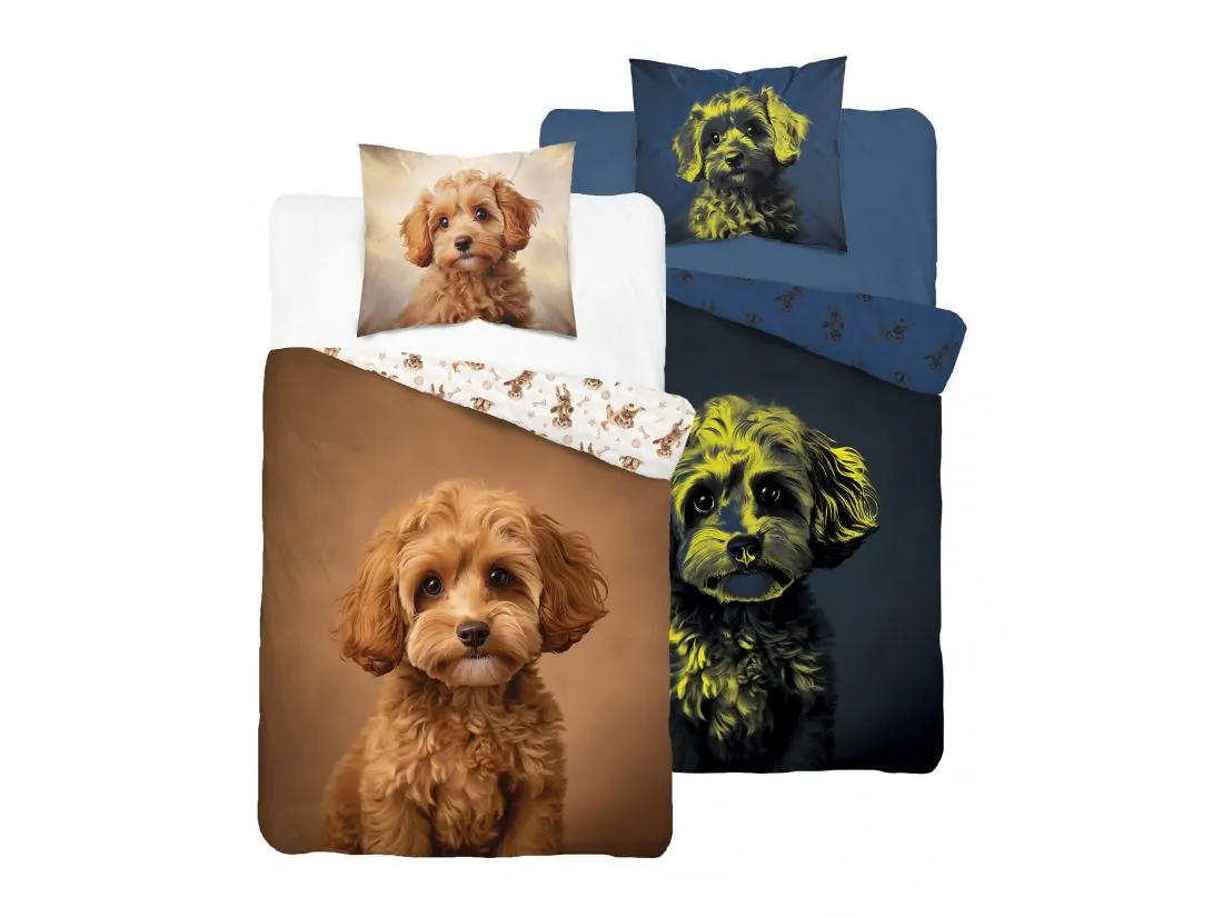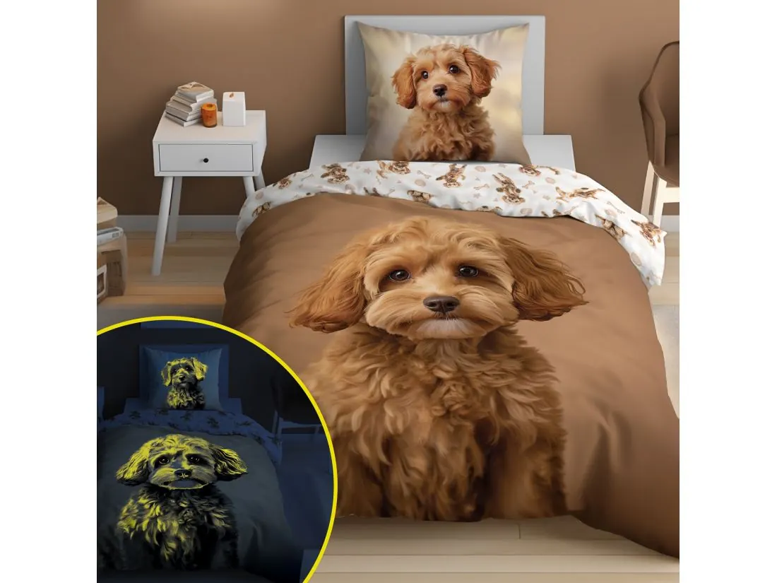 Pościel z bawełny dla dzieci 160x200+70x80 pudel miniaturowy fluo 5421a świeci w ciemności