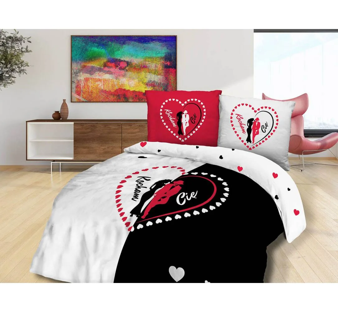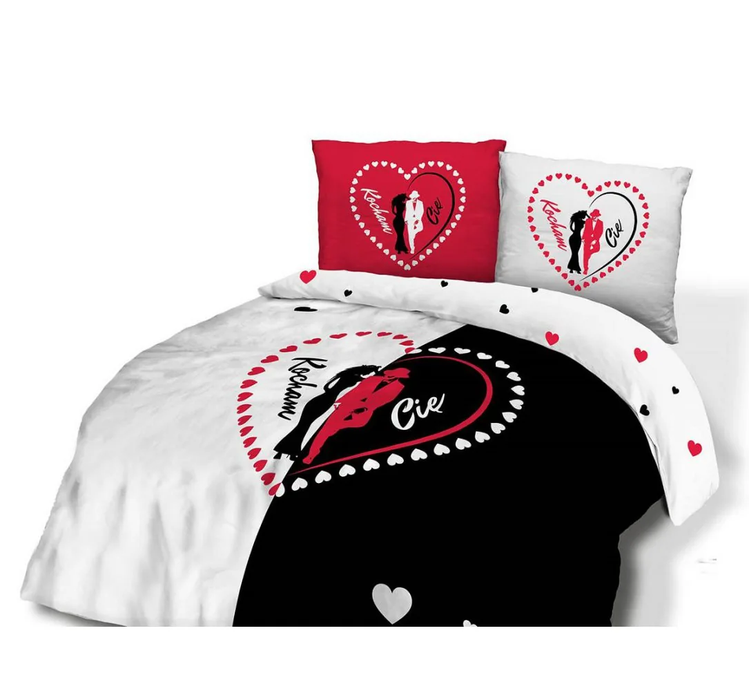 Niecodzienna pościel dla zakochanych z bawełny w rozmiarze 160 x 200 cm z kolekcji Vintage Collection wzór 61469/1, pościel posiada odpasowany dwustronny wzór w biało czarno czerwonym kolorze.