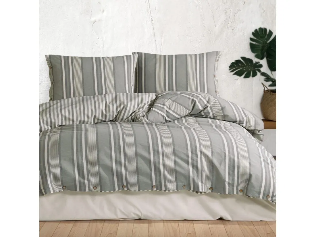 Wyjątkowość kolekcji Natual podkreśla wzór w pasy, który dodaje pościeli subtelny, lecz elegancki charakter. Zapinane na guziki poszewki i poszwa pozwalają na łatwe i wygodne zakładanie i zdejmowanie pościeli.