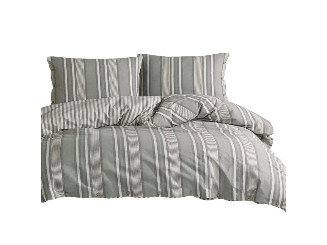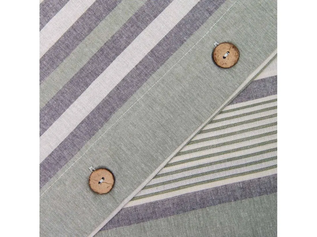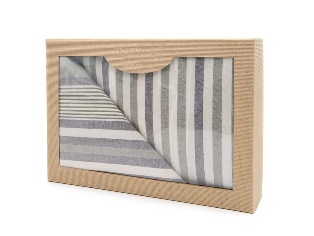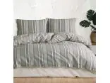 Pościel z bawełny Natural 220x200+2/70x80 Dokya białe szare zielone pasy