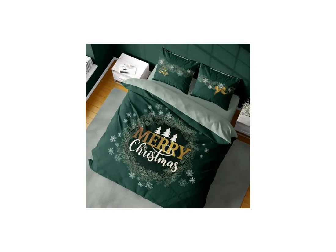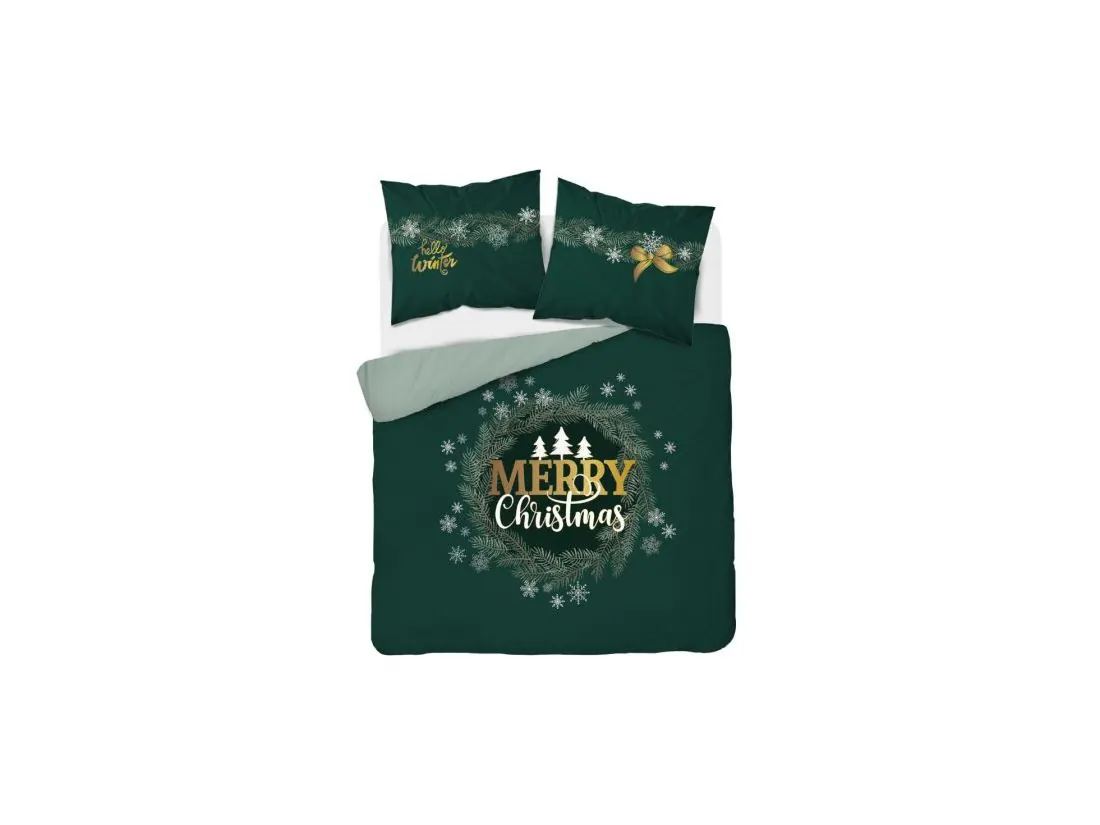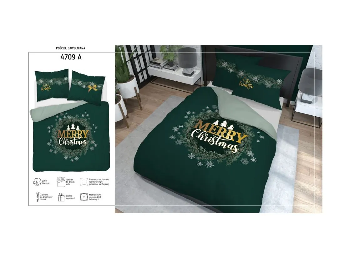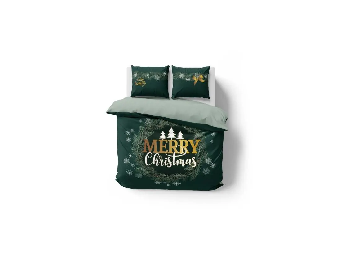 Pościel z bawełny świąteczna 220x200 Merry Christmas zielona Holland holenderska