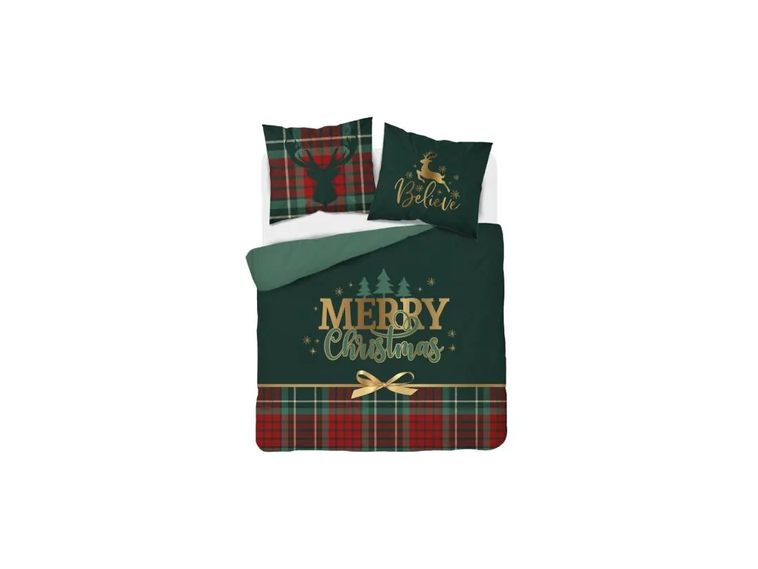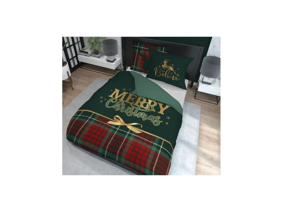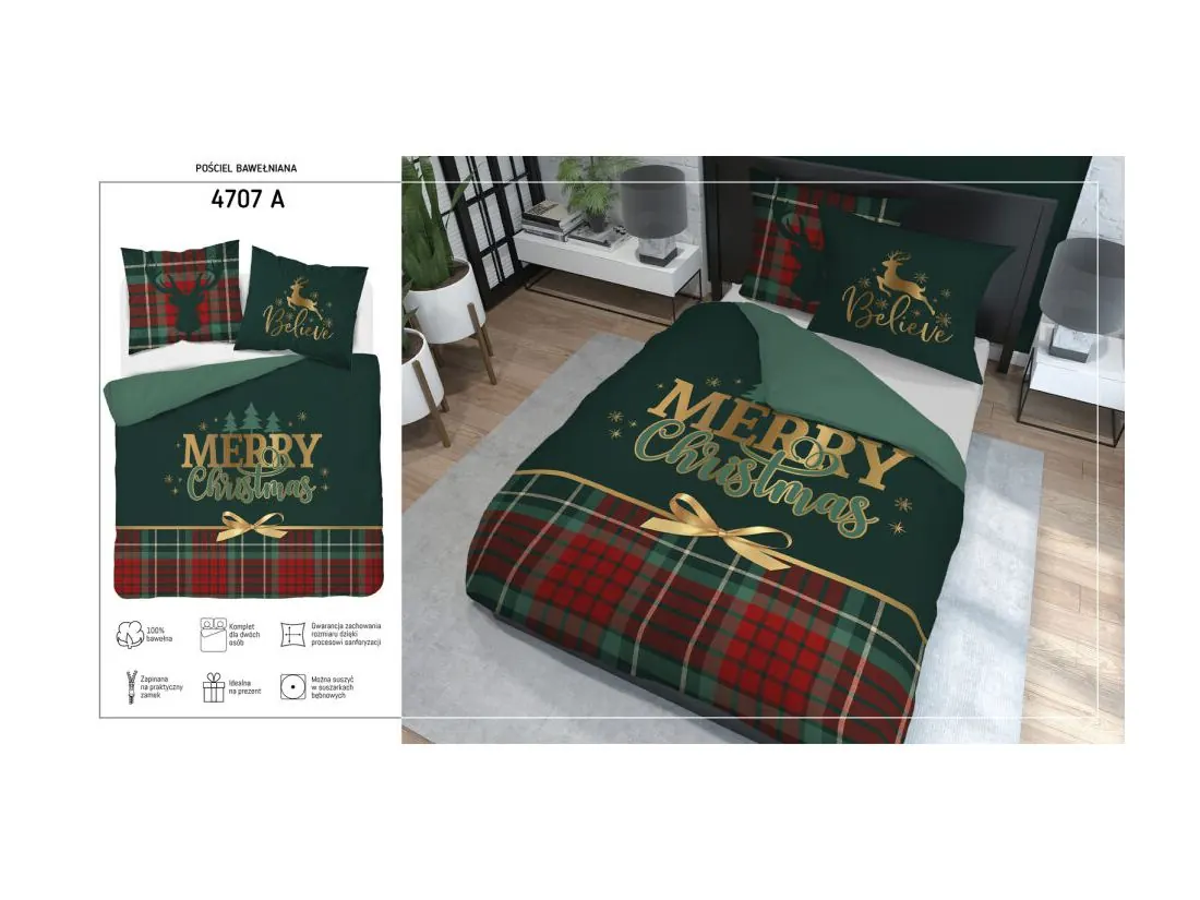 Pościel z bawełny świąteczna 220x200 Merry Christmas zielono czerwona Holland holenderska