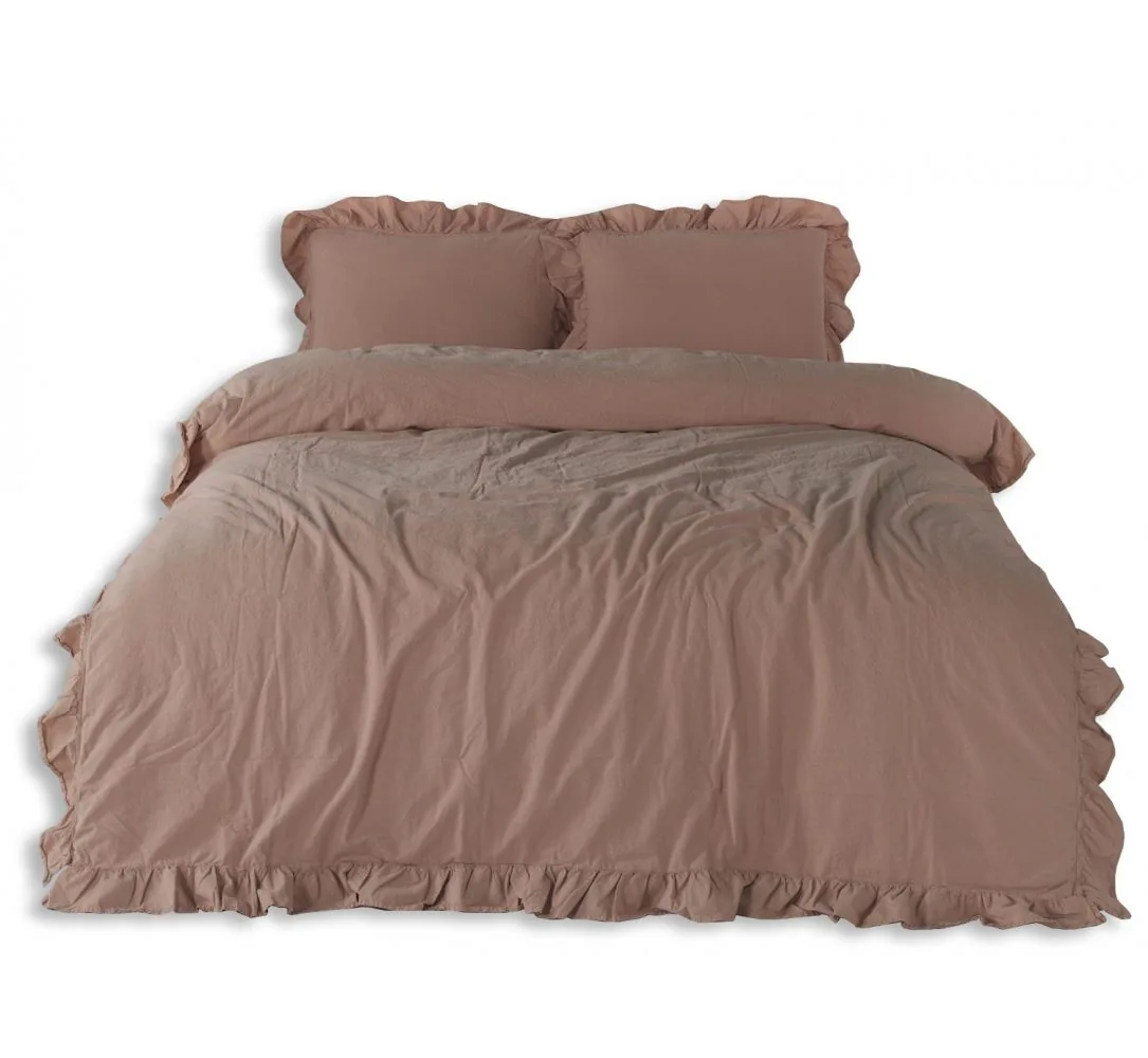 Pościel bawełniana z falbanką 160x200 Exclusive Stonewashed Cameo Brown.