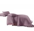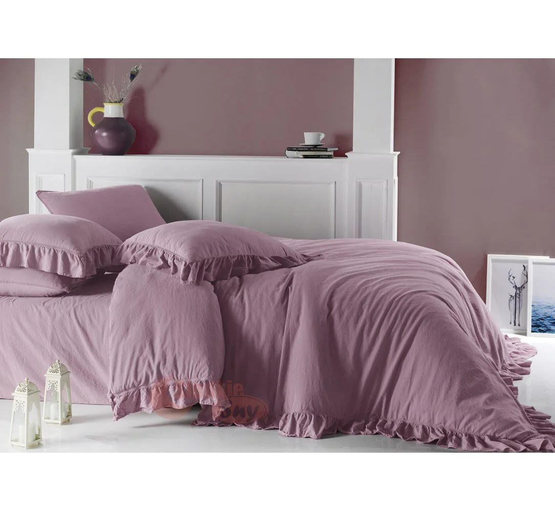 Poszwa na kołdrę została ozdobiona dekoracyjną falbanką, która dodaje elegancji i subtelności. Zapinana na guziki, pościel utrzymuje kołdrę na miejscu, zapewniając wygodę i bezpieczeństwo podczas snu. Poszewka na poduszkę posiada falbankę na czterech stronach, co nadaje jej delikatny i romantyczny wygląd. Poszewka zapinana jest na zakładkę, co sprawia, że wkładka pozostaje na miejscu i nie przesuwa się podczas snu.