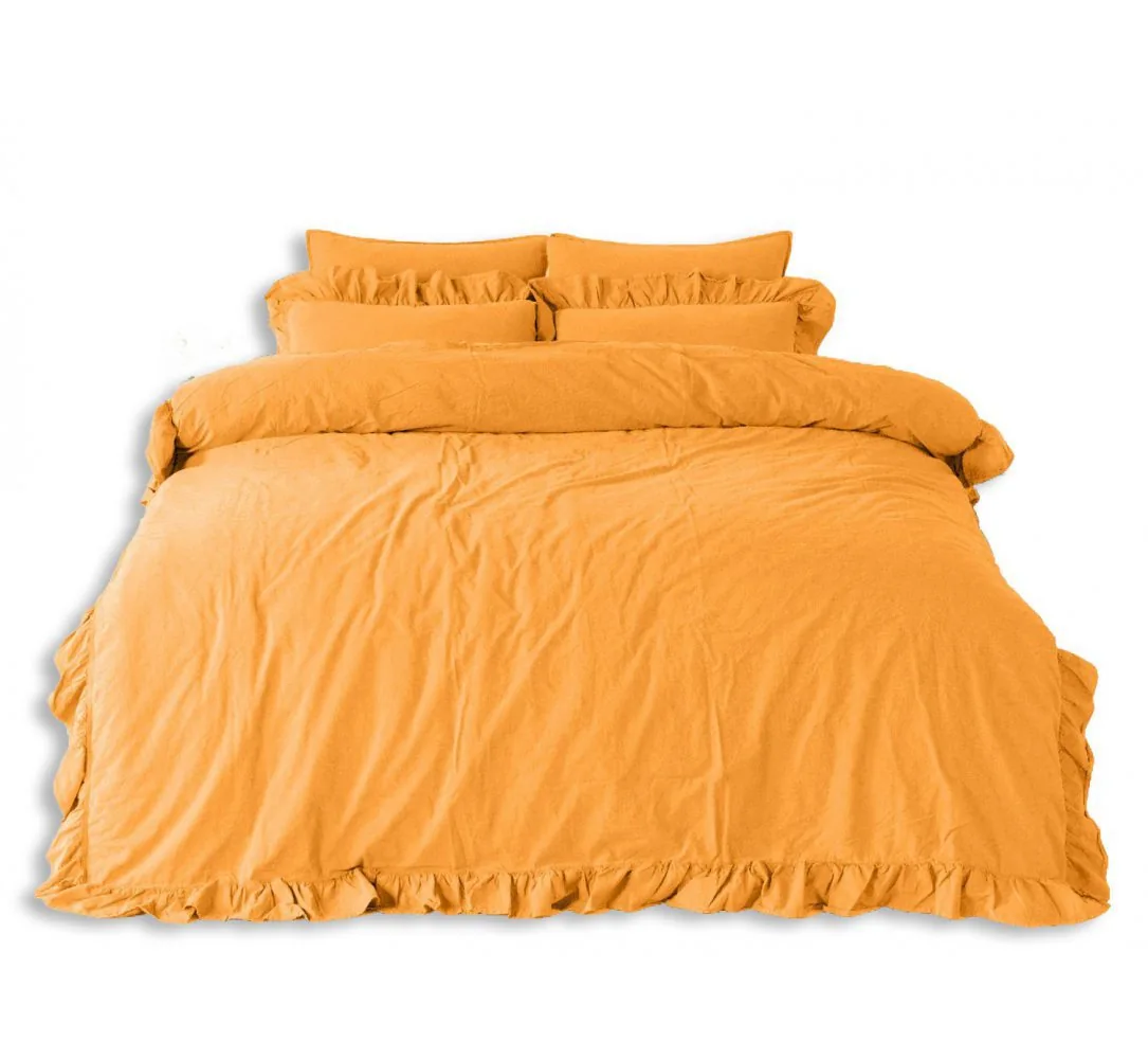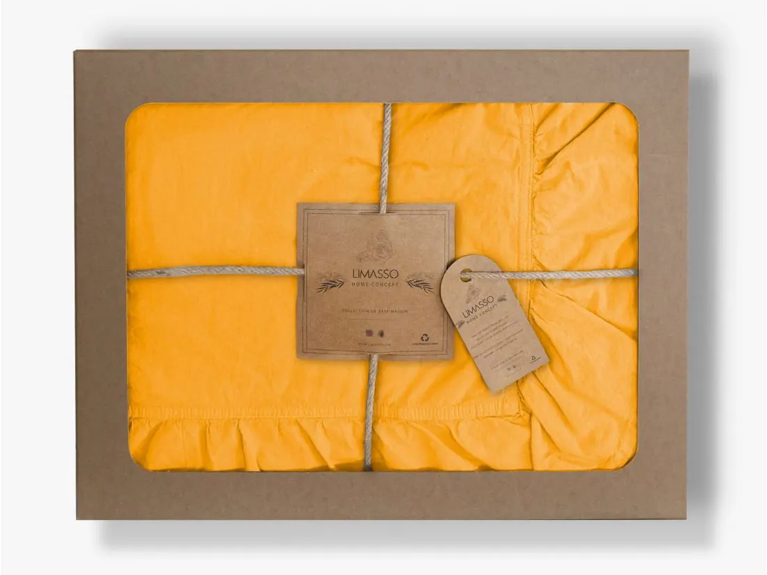 Pościel bawełniana z falbanką 200x220 Exclusive Stonewashed Limonade.