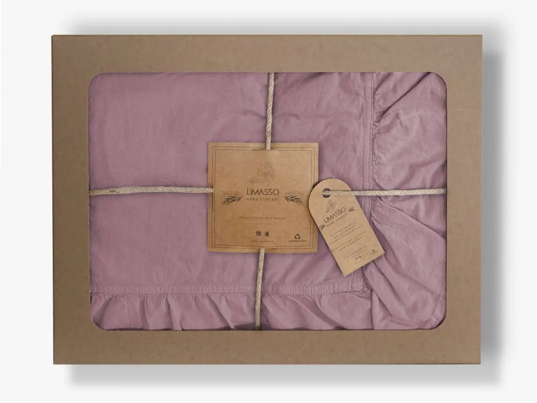 Poszwa na kołdrę została ozdobiona dekoracyjną falbanką, która dodaje elegancji i subtelności. Zapinana na guziki, pościel utrzymuje kołdrę na miejscu, zapewniając wygodę i bezpieczeństwo podczas snu. Poszewka na poduszkę posiada falbankę na czterech stronach, co nadaje jej delikatny i romantyczny wygląd. Poszewka zapinana jest na zakładkę, co sprawia, że wkładka pozostaje na miejscu i nie przesuwa się podczas snu.