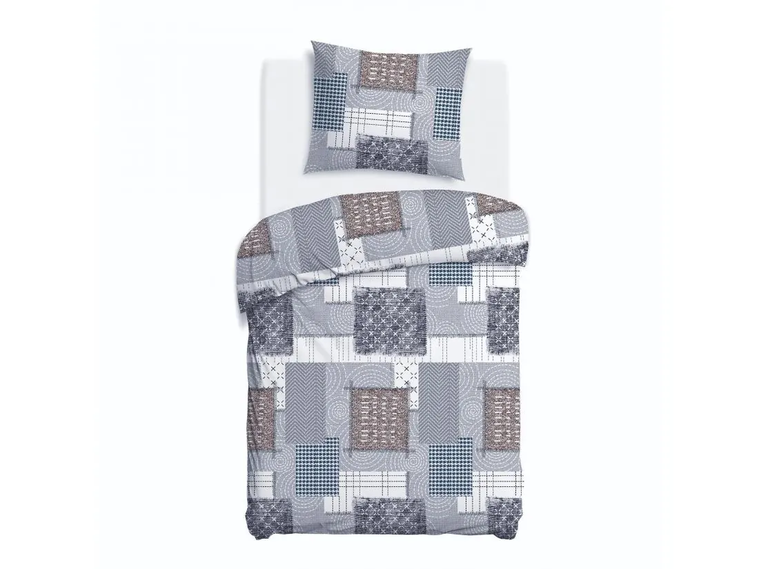 Pościel z flaneli 140x200 – geometryczny wzór w odcieniach szarości, ciepła i nowoczesna