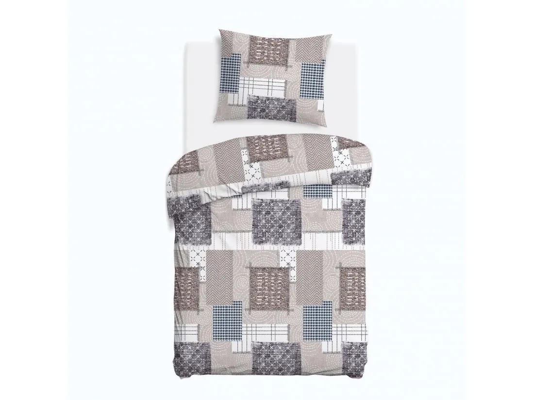 Pościel z flaneli 140x200 – nowoczesny wzór na beżowym tle, geometryczne akcenty, miękka i ciepła