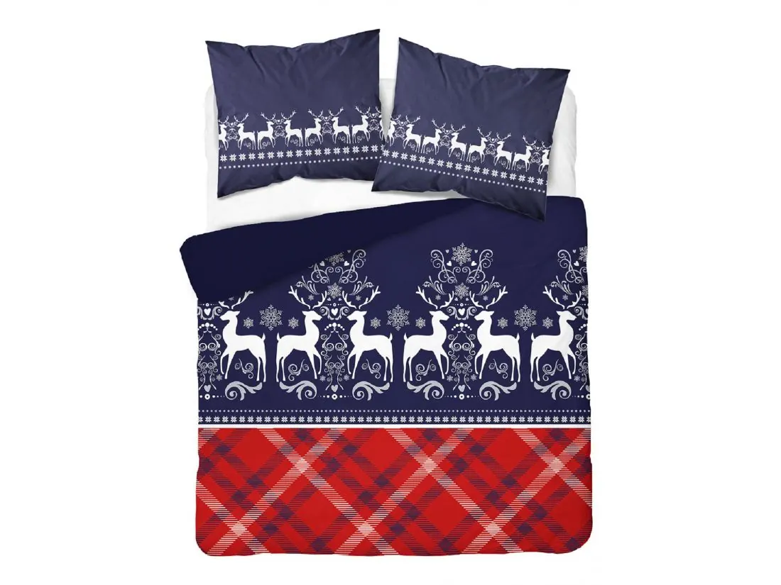 Pościel z flaneli -160x200 - 3642 A granatowe renifery świąteczna Detexpol