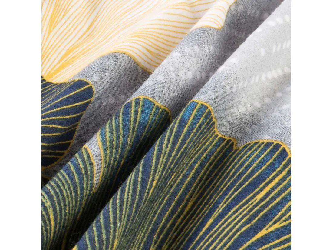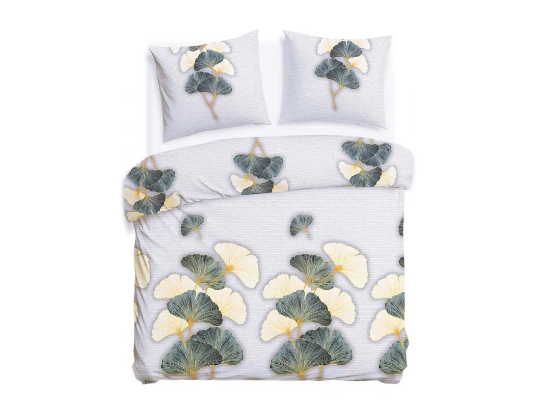 Wzór pościeli z flaneli zdobią delikatne liście miłorzębu w odcieniach zieleni i kremu, które tworzą naturalną, spokojną kompozycję na jasno szarym tle. Zieleń liści wprowadza świeżość i harmonijny akcent, natomiast kremowe detale dodają subtelnej elegancji. Jasnoszare tło stanowi idealne tło, które podkreśla delikatność wzoru, jednocześnie nadając mu nowoczesny i uniwersalny charakter. Pościel z flaneli, dzięki swojej miękkiej i ciepłej strukturze, dodatkowo podkreśla przytulny, naturalny klimat wzoru, zapewniając komfortowy i ciepły sen przez cały rok.