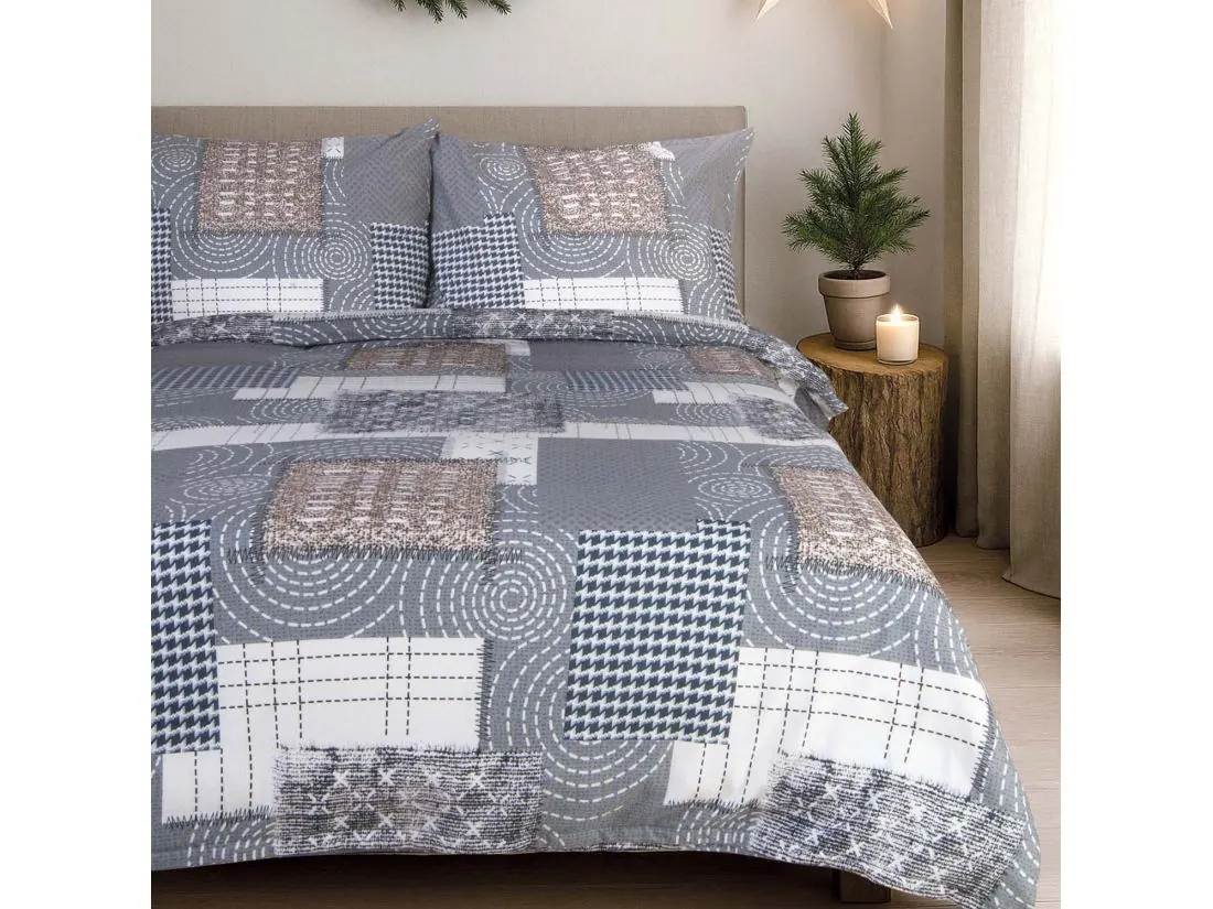 Pościel z flaneli 180x200 – geometryczny wzór w odcieniach szarości, ciepła i nowoczesna