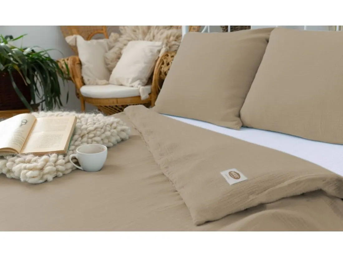 Pościel z muślinu to idealne rozwiązanie dla osób szukających nowoczesnych i prostych rozwiązań w swojej sypialni. Dodatkowo pościel zapakowana jest w dekoracyjne ozdobne Eco-pudełko oraz przewiązane dekoracyjnym sznurkiem dzięki czemu może być idealnym pomysłem na prezent dla bliskiej osoby bądź też prezentem na ślub lub wyjątkowe okazje.