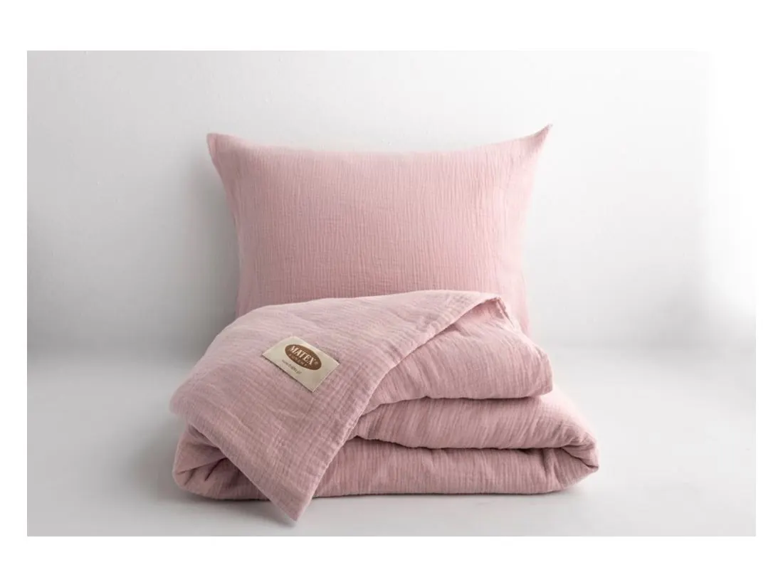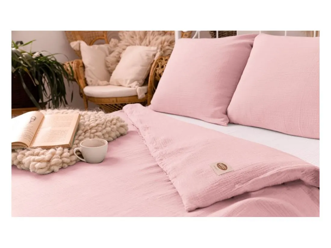 Pościel z muślinu 140x200 +1/70x80 jednobarwna różowa muślinowa róż