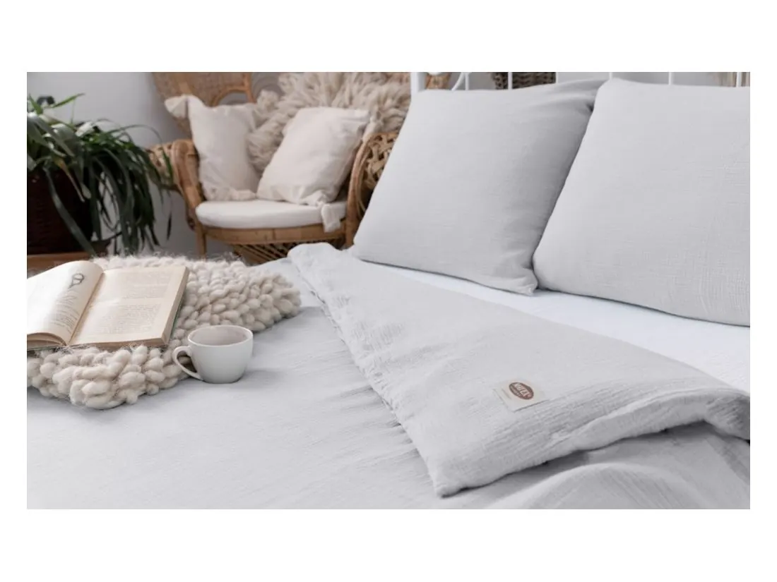 Pościel z muślinu to idealne rozwiązanie dla osób szukających nowoczesnych i prostych rozwiązań w swojej sypialni. Dodatkowo pościel zapakowana jest w dekoracyjne ozdobne Eco-pudełko oraz przewiązane dekoracyjnym sznurkiem dzięki czemu może być idealnym pomysłem na prezent dla bliskiej osoby bądź też prezentem na ślub lub wyjątkowe okazje.