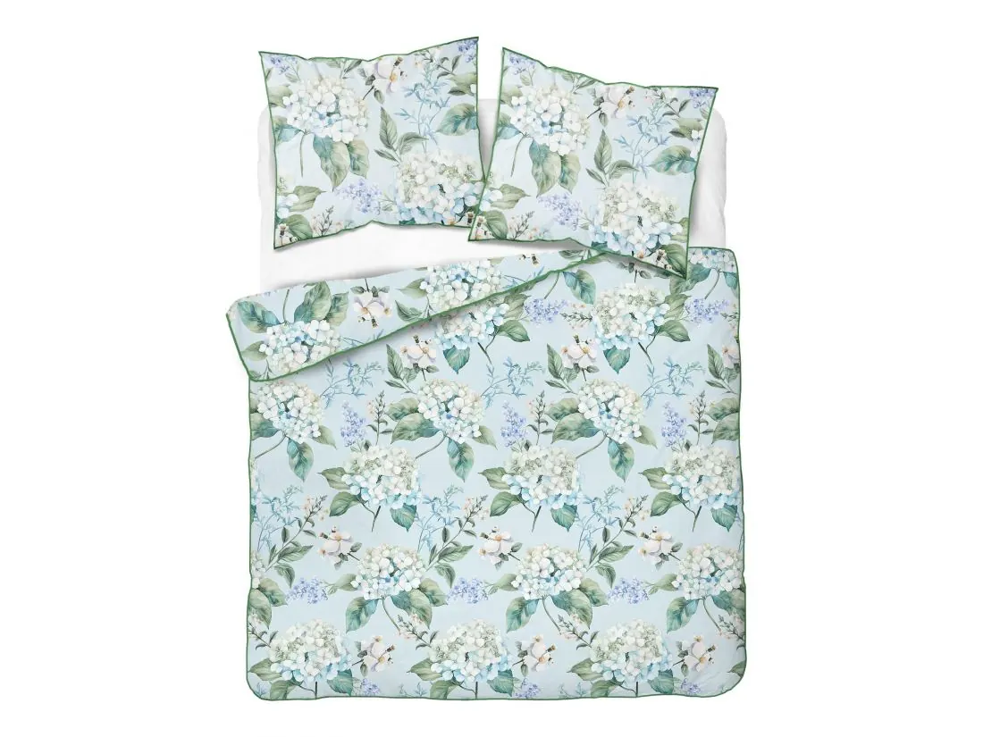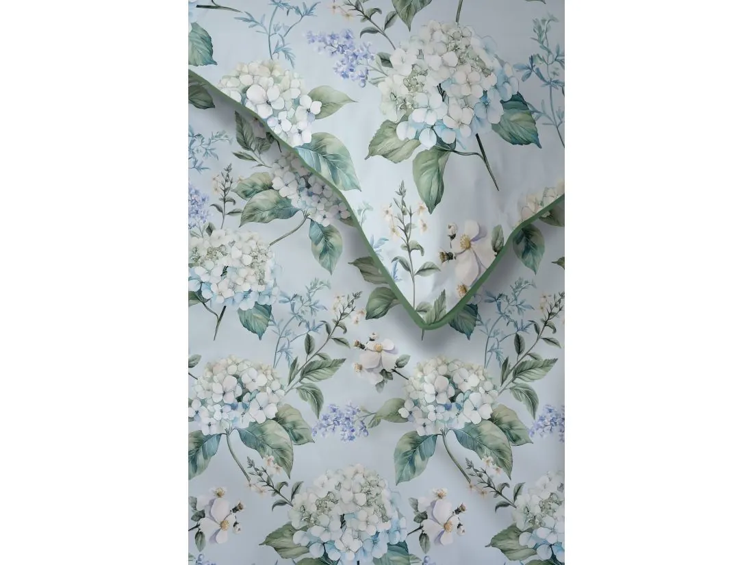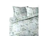 Pościel z perkalu 220x200 + 2/70x80 z lamówką + torba, kwiaty na miętowe tle Lame Percale 5589 a