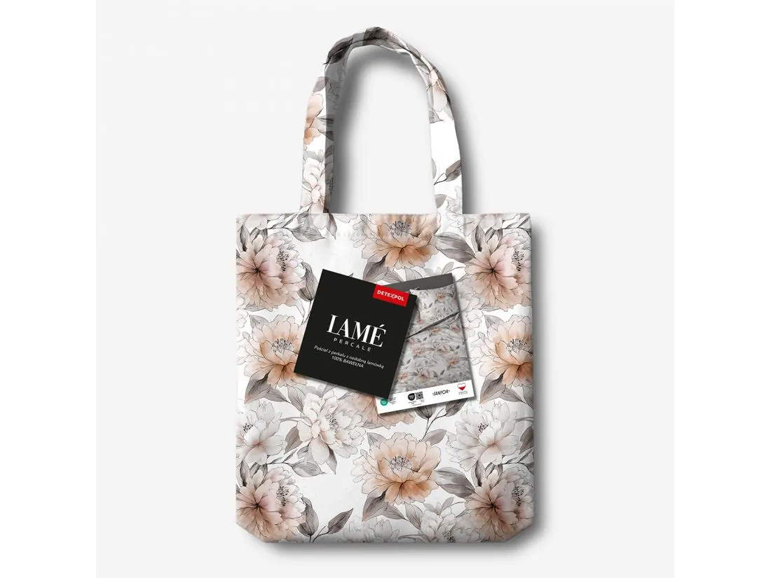 Pościel Perkalowa 220x200 Lame Percale – 100% Bawełna, Beżowo-Różowy Floral z Lamówką + Torba