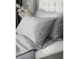 Dla uzyskania spójnego efektu na dużej płaszczyźnie, komplet warto zestawić z odcieniami antracytu, bieli lub pudrowego różu, który nawiąże do ozdobnej lamówki. Pościel perkalowa w tej kolorystyce bardzo dobrze prezentuje się również w otoczeniu naturalnego drewna, które ociepla szarość materiału. Rekomendujemy unikanie jaskrawych, neonowych barw, aby zachować elegancki i spokojny charakter tego zestawu.