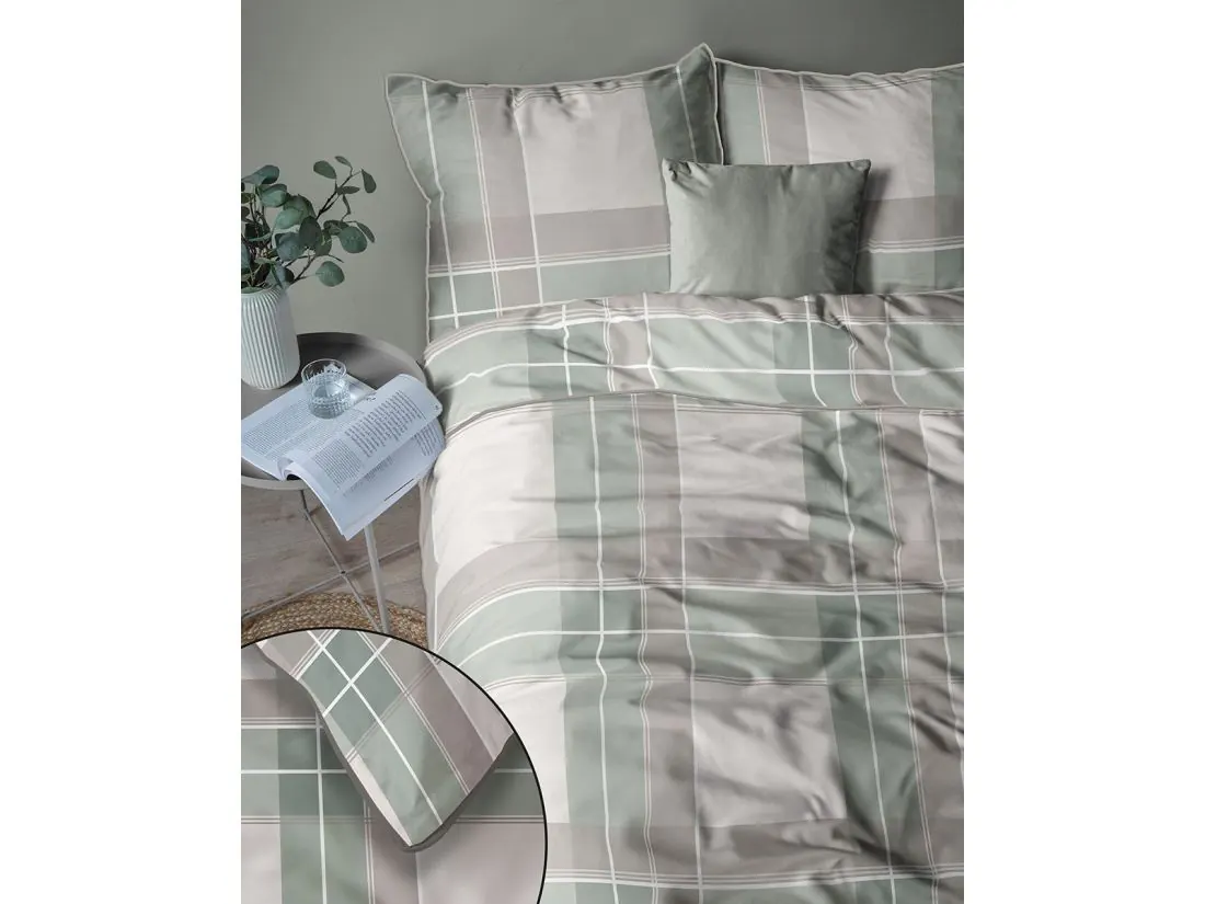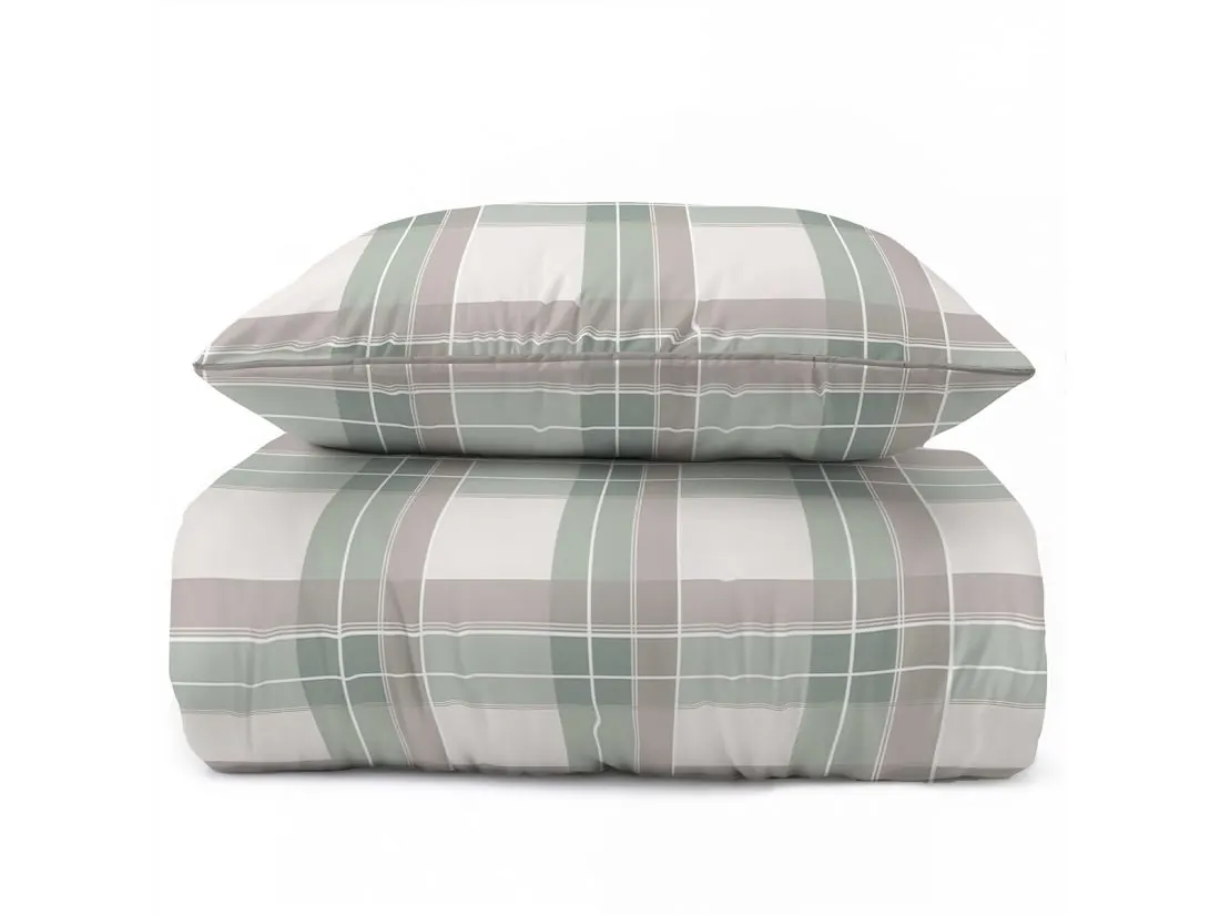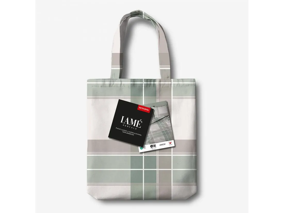 Pościel z perkalu 220x200 – zielona krata, lamówka + torba - 100% bawełna