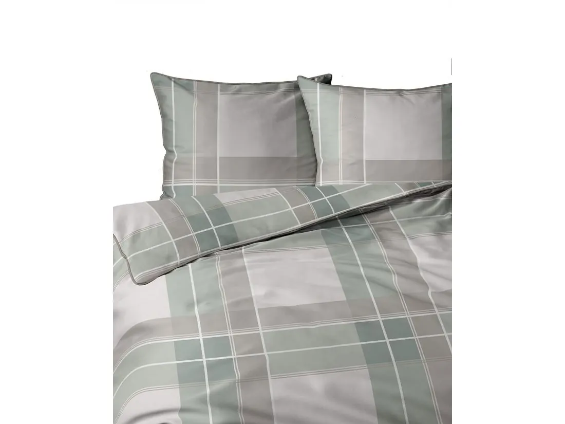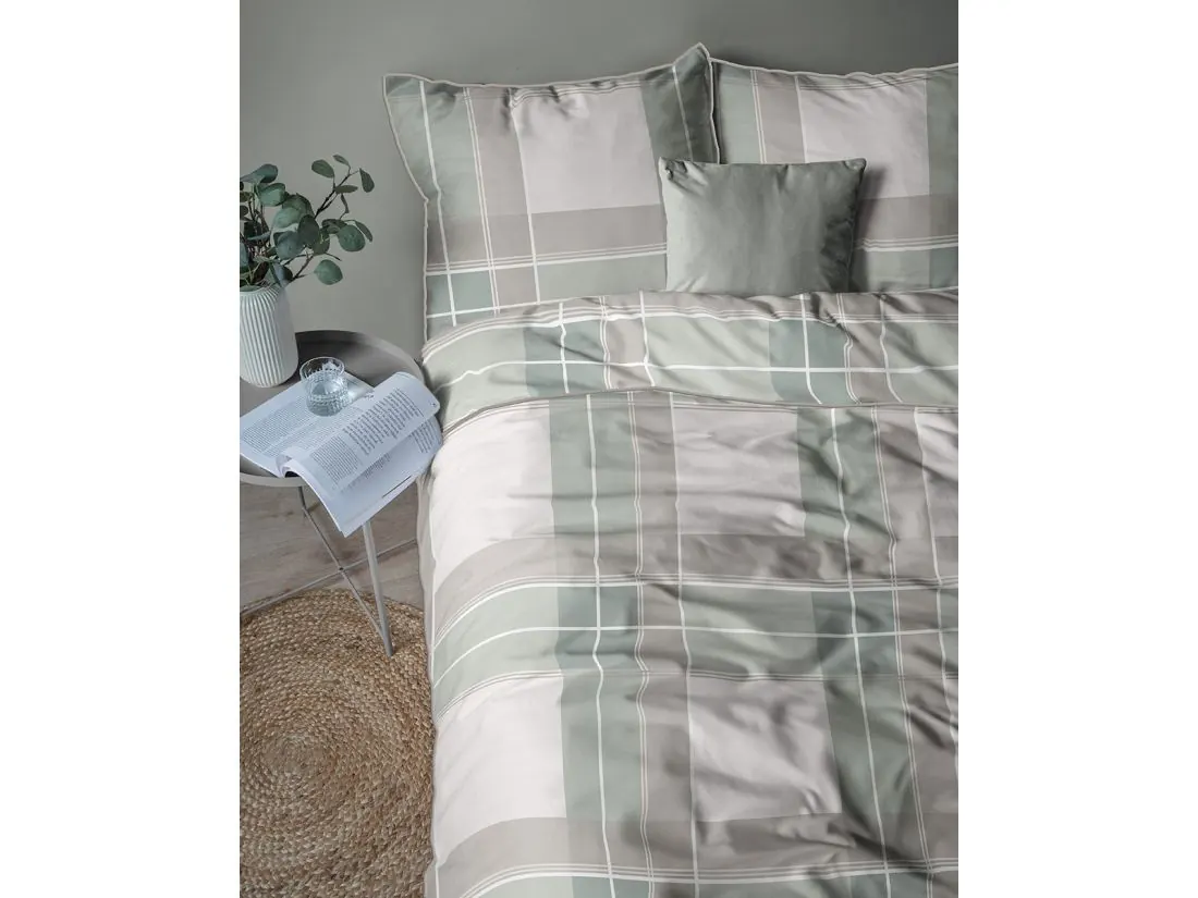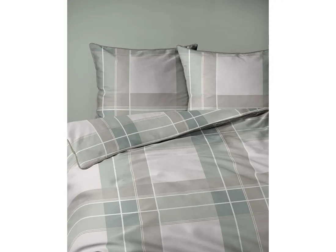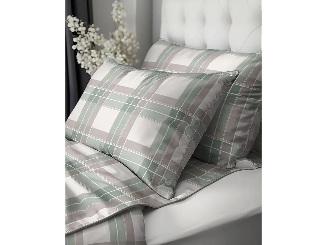 Pościel z perkalu 220x200 – zielona krata, lamówka + torba - 100% bawełna