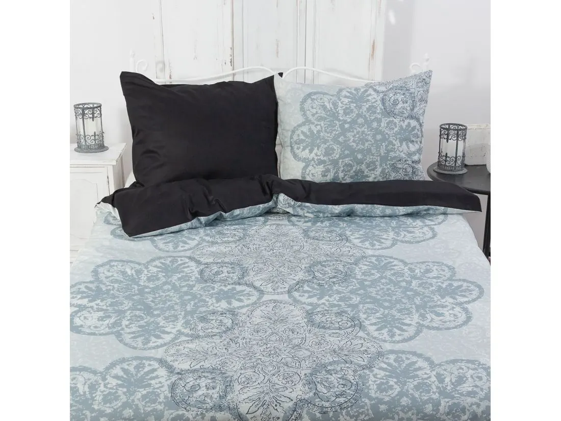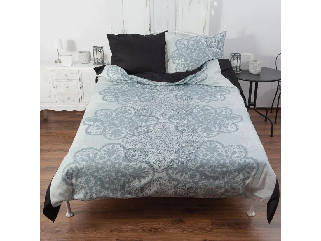 Pościel dwustronna z jednej strony fantazyjny wzór rozety-origami z drugiej strony magiczny czarny kolor, to wyjście z monotonii oraz obiekt pożądania wszystkich ceniących luksus i elegancja w swojej sypialni.