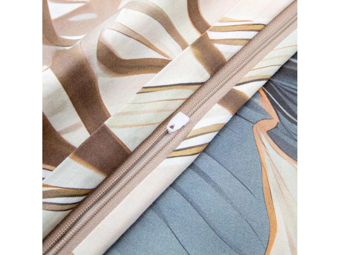 Dzięki zastosowaniu zaawansowanej techniki druku cyfrowego, kolory i detale wzoru są wyjątkowo trwałe, a ich intensywność pozostaje niezmienna nawet po wielokrotnym praniu. Pościel wyposażona jest w praktyczny zamek błyskawiczny, dyskretnie ukryty pod elegancką plisą, co podkreśla jej stylowy wygląd i zapewnia wygodę użytkowania.