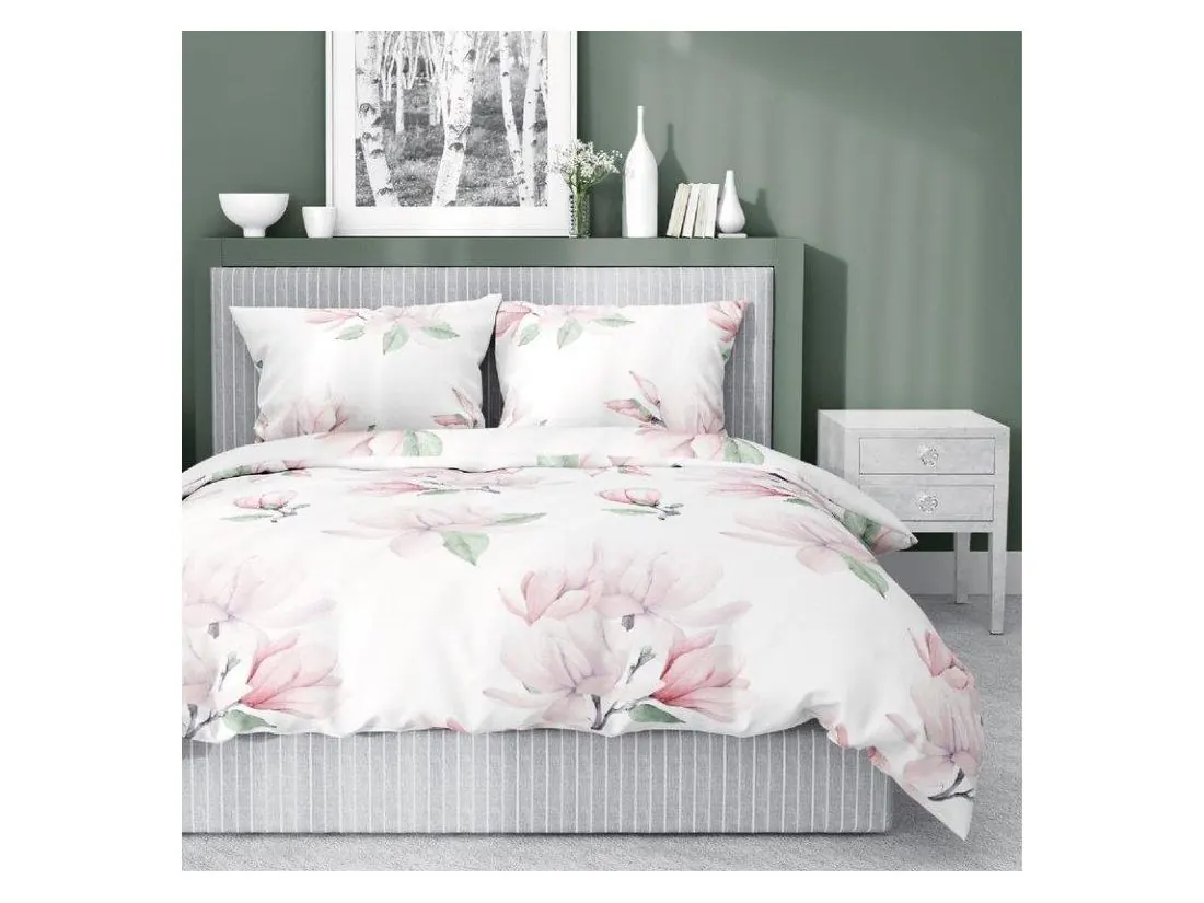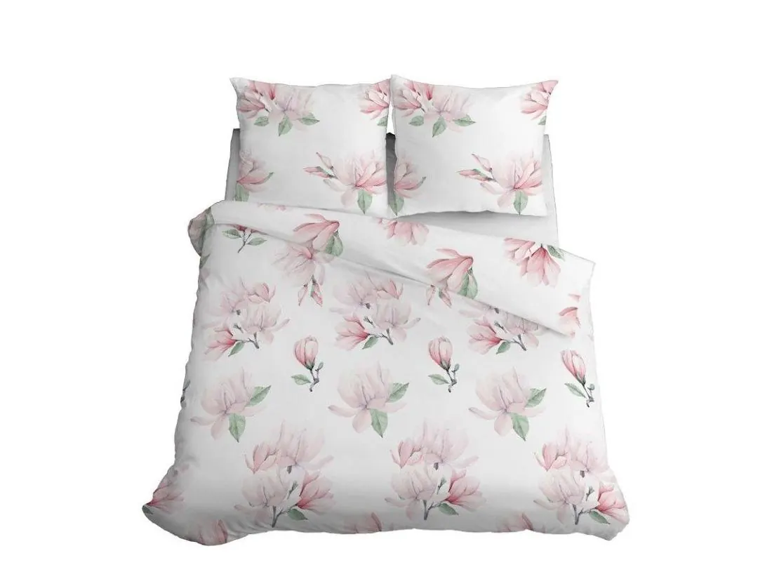 Pościel z satyny bawełnianej 220x200 +2/70x80/ kwiat magnoli wz 4241 a