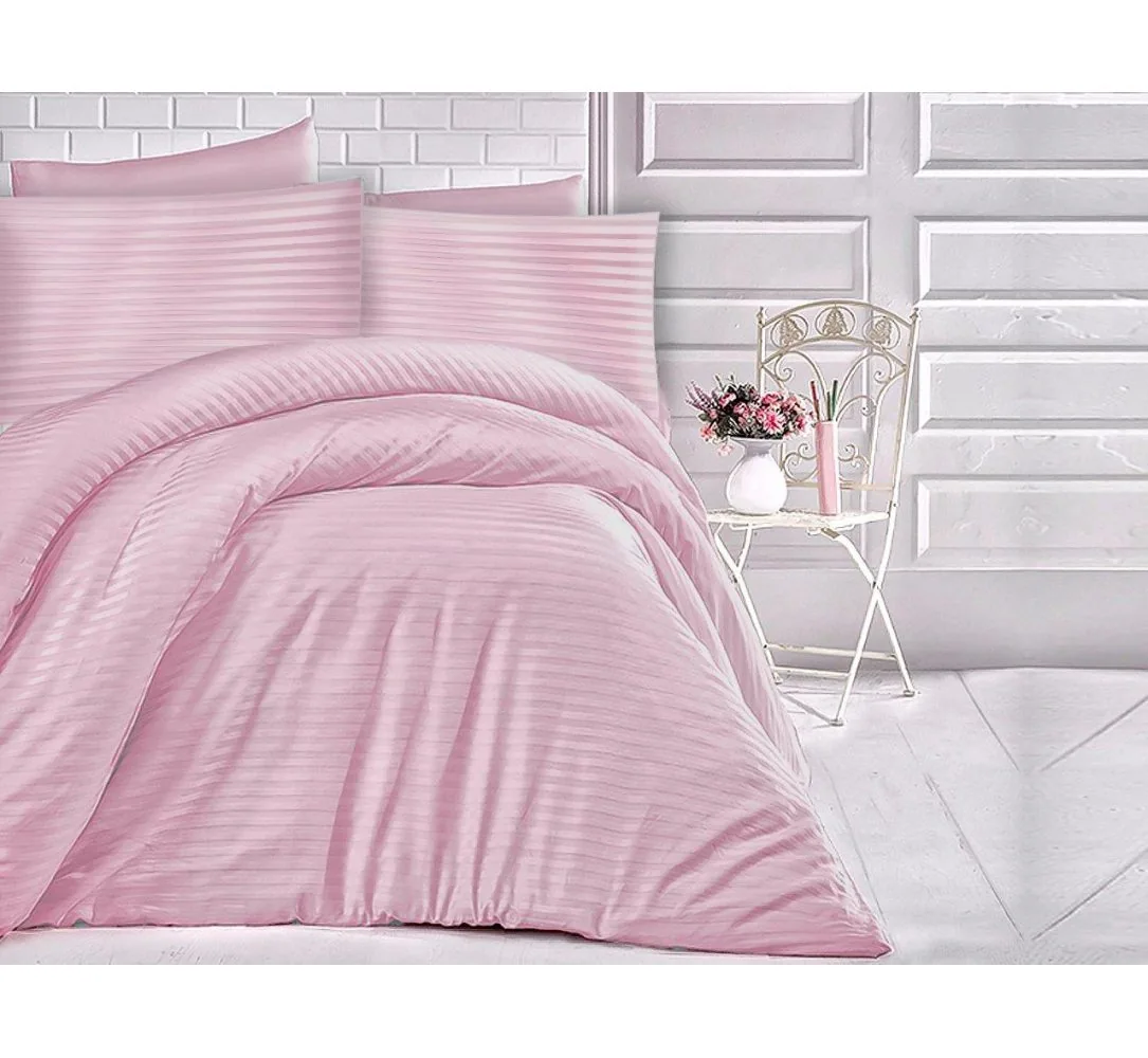 Jednobarwna pościel satynowa w delikatny deseń pasków z kolekcji Luxury model Cizgili Pink w rozmiarze 200 x 220 cm we wrzosowej kolorystyce.
