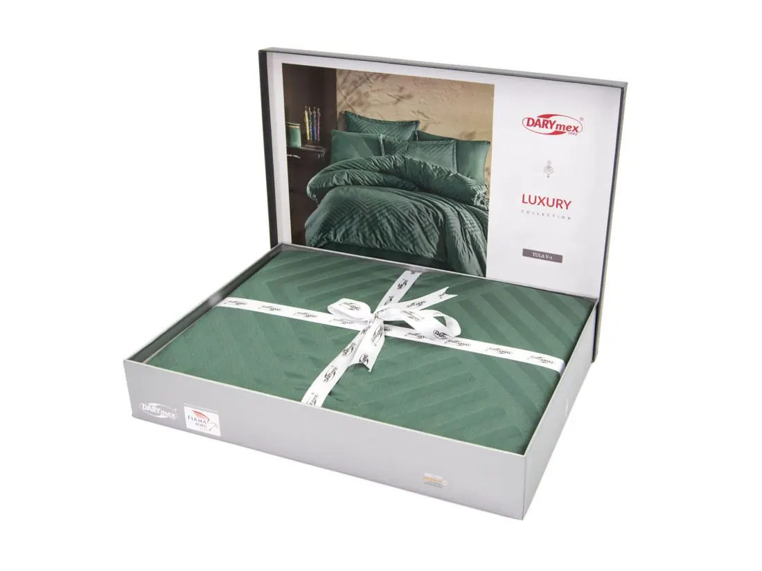 Pościel z satyny bawełnianej żakardowej 160x200+2/70x80/ Tula 1 Luxury Jacquard zielony wzorek