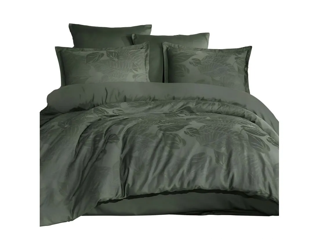 Unikalny proces barwienia przędzy przed tkaniem zapewnia trwałość kolorów oraz niezmienną miękkość i gładkość przez długie lata. Motyw liści w kolorze ciemnozielonym dodaje pościeli wyrafinowanej elegancji, doskonale komponując się z luksusową aranżacją każdej sypialni.