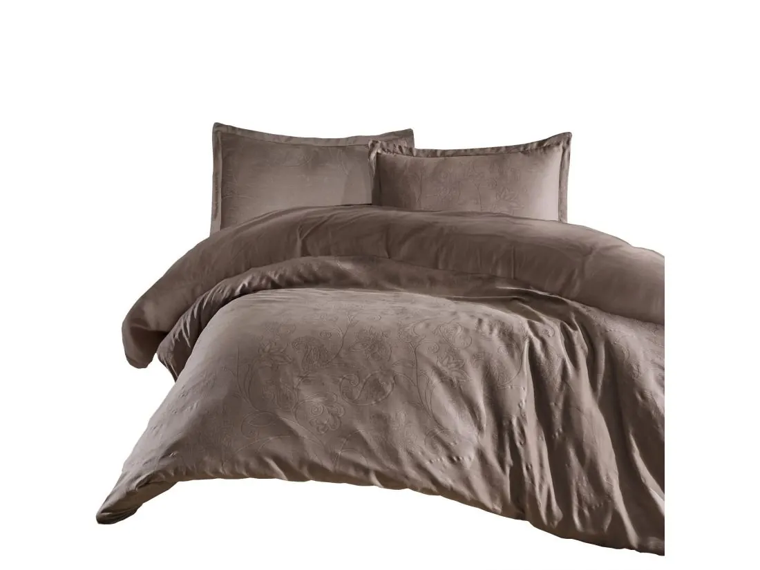 Pościel z satyny bawełnianej żakardowej 220x200+2/70x80/ Sadra Luxury Jacquard brązowe liście