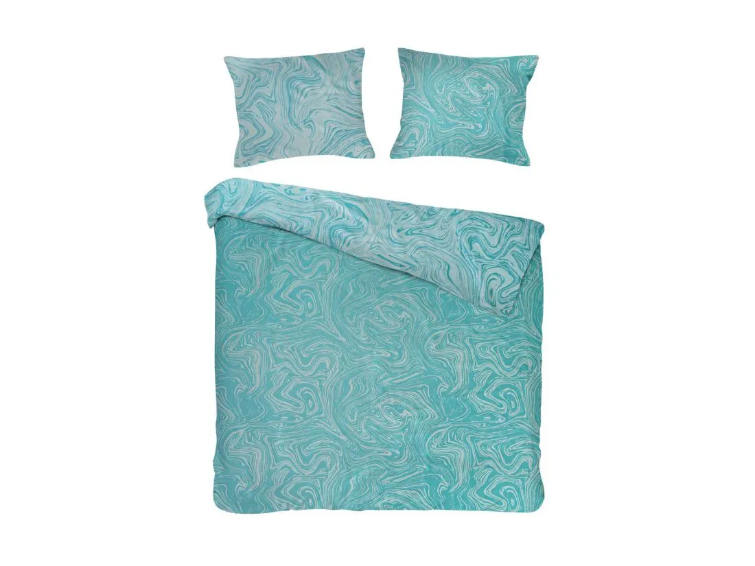 Pościel żakardowa 160x200 +2/70x80 marble turquoise cottonlove jacquard bawełna turkus