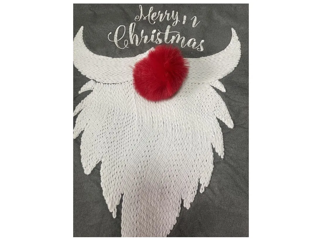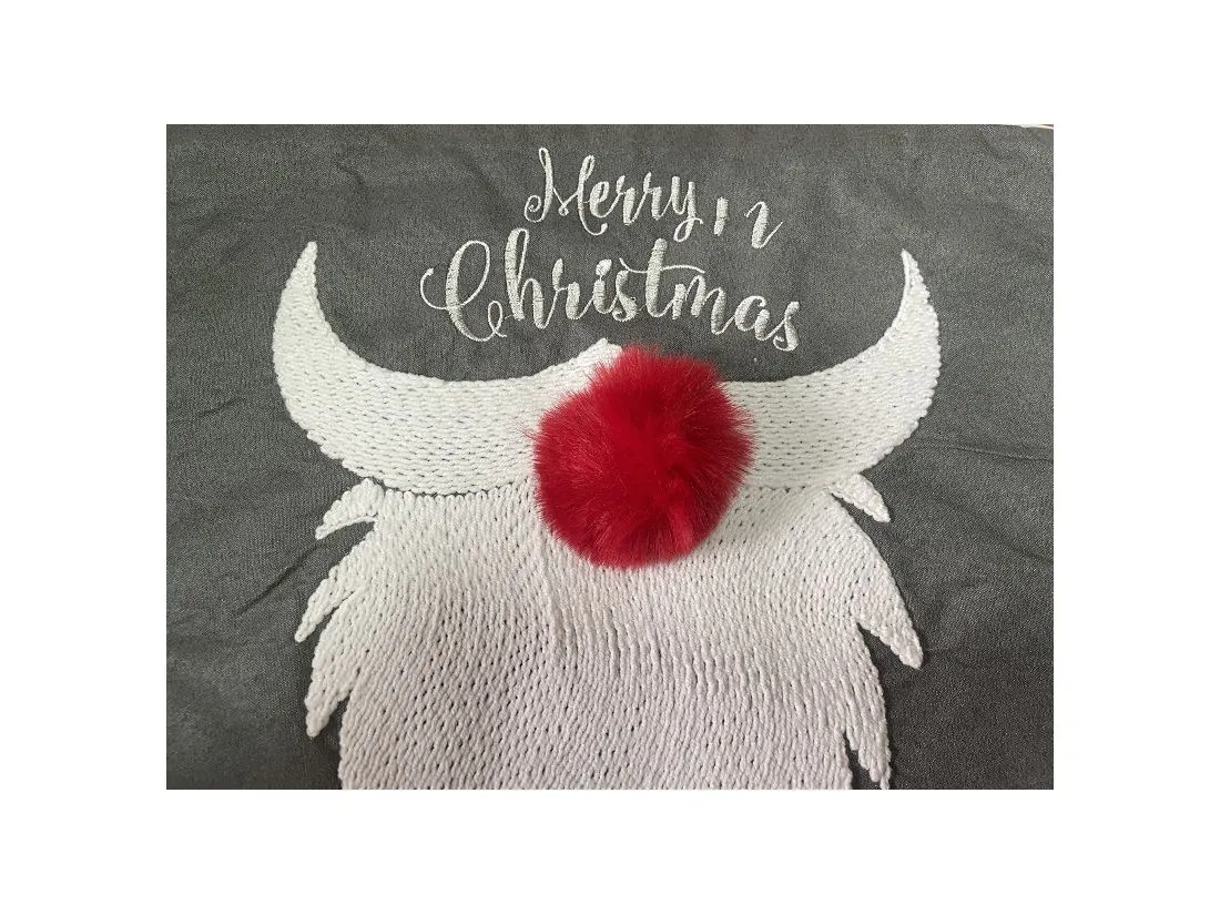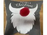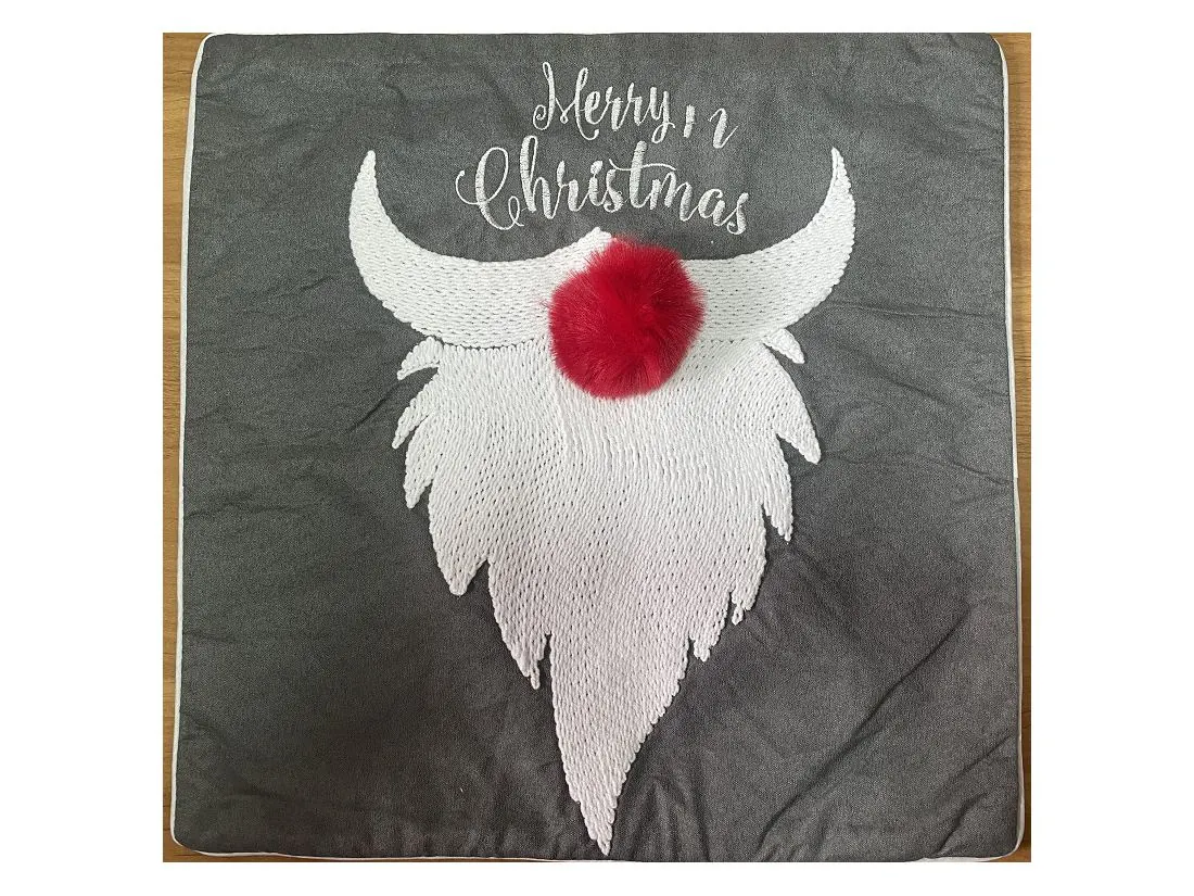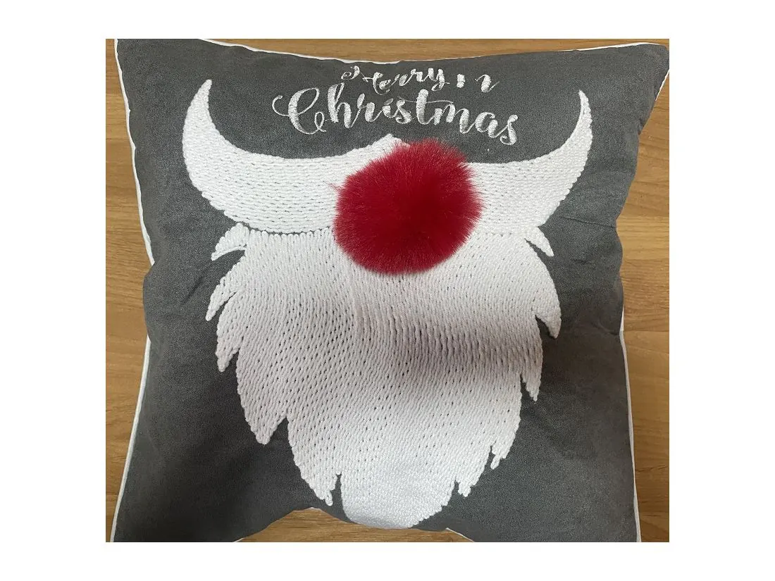 z precyzyjnie naszytym motywem świątecznym tj. wyszytą biała włóczką brodą skrzata jak również puchatym noskiem, która magicznie podkreśli klimat Świąt Bożego Narodzenia, dodatkową ozdoba jest lamówka wokół poszewki.