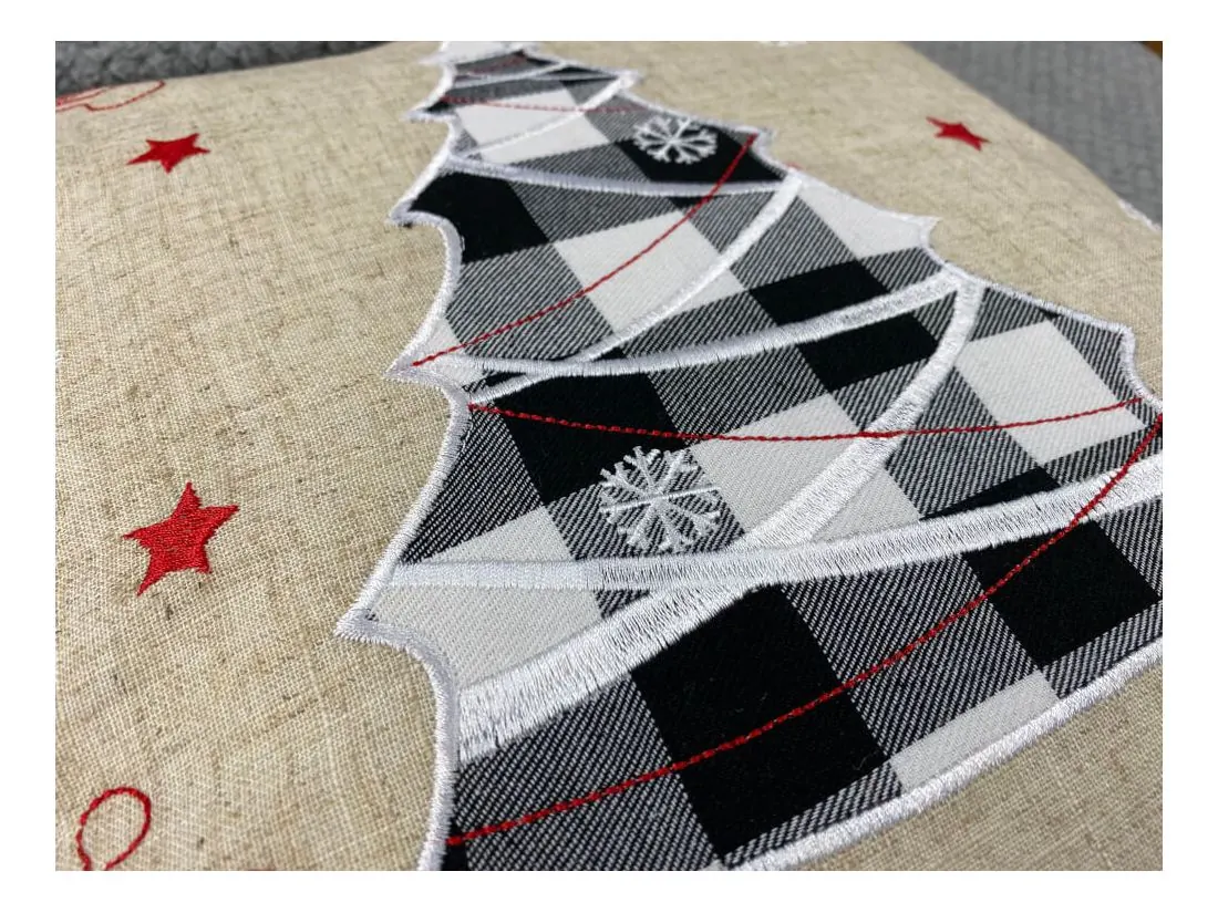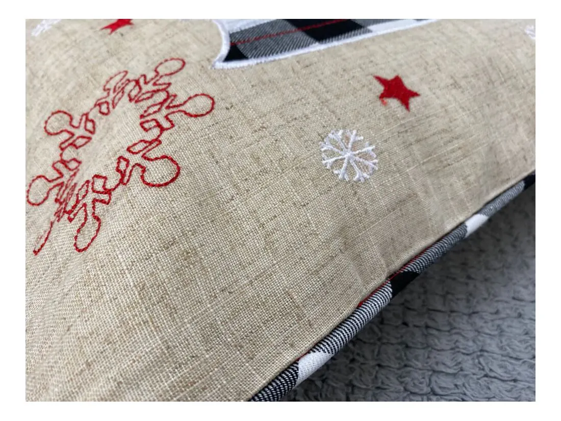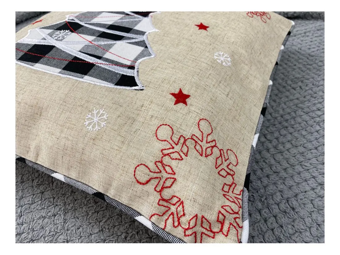 Świąt Bożego Narodzenia, dodatkową ozdoba jest zastosowana lamówka wokół poszewki.